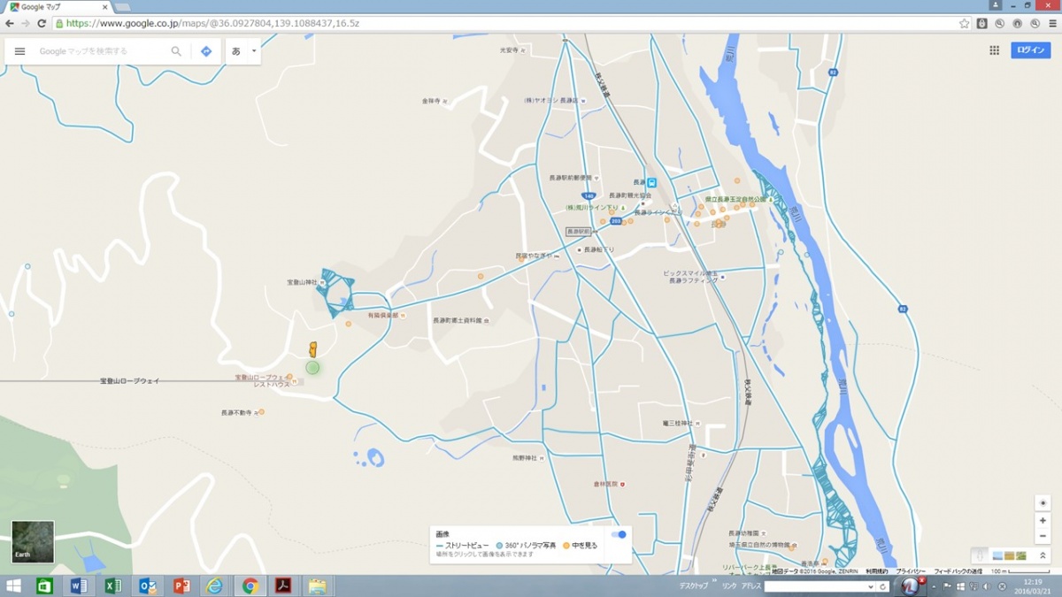 ➀グーグルマップ(https://www.google.co.jp/maps/@36.0868032,139.1120413,15z)を立ち上げる。