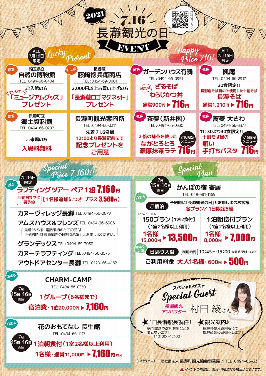 ・7月16日 12時~ 長瀞町観光案内所(長瀞駅前) 先着71.672)名