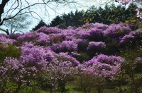 岩根神社境内、社務所前の山林一帯、参道の両側に樹齢100年を越す見事なツツジが1,000株もの大群落をつくり、満開時には山全体が紫に染まります。