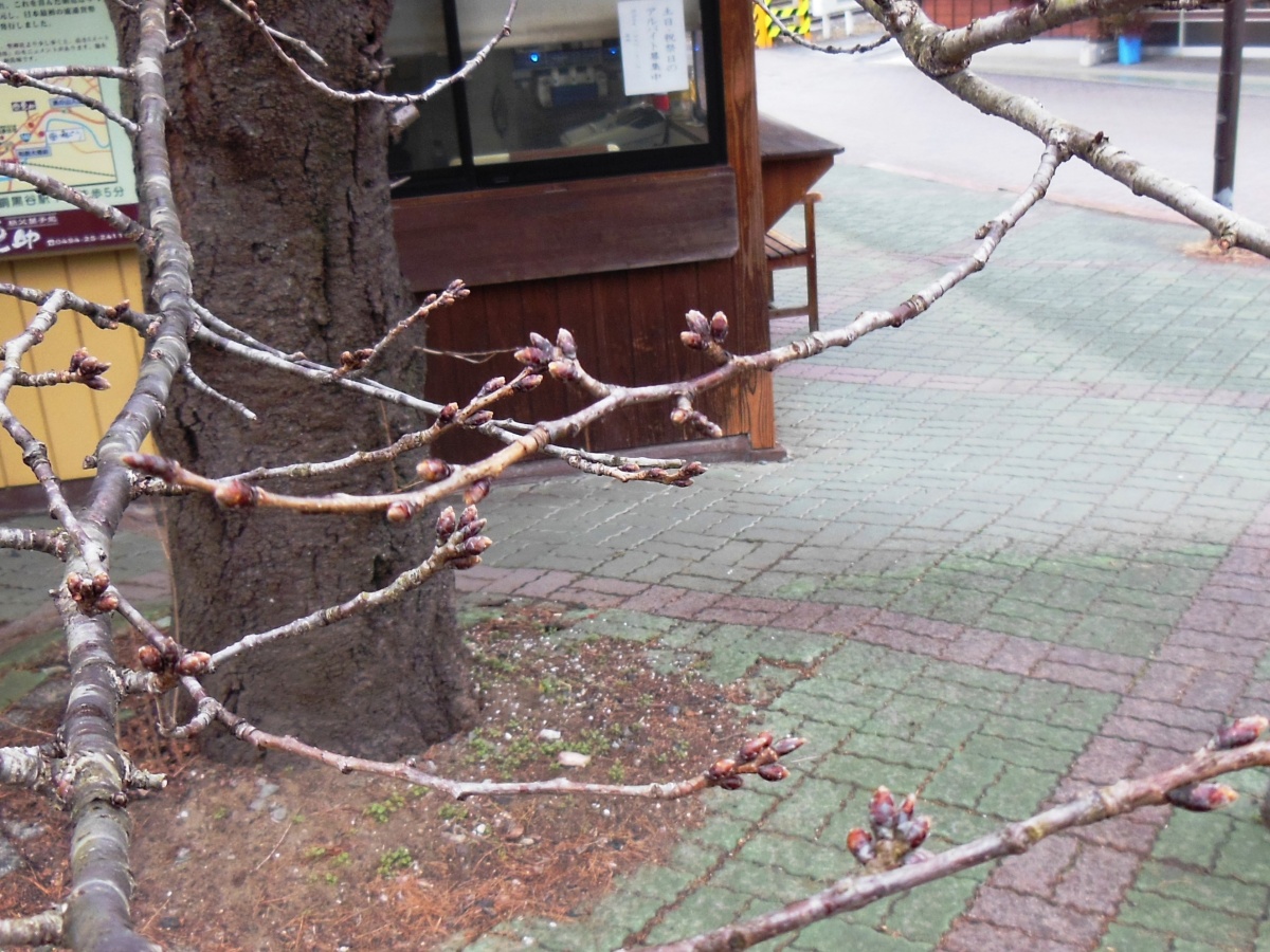 長瀞駅前のソメイヨシノも少しつぼみが膨らみ始めました。