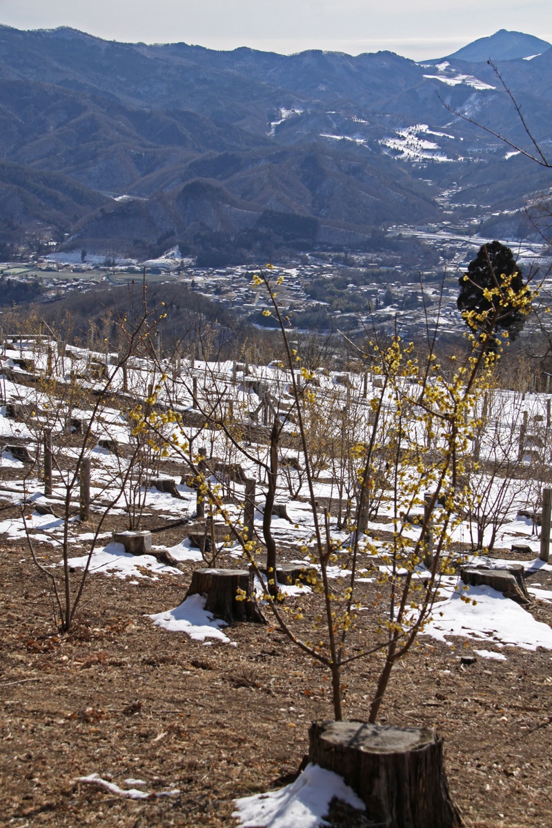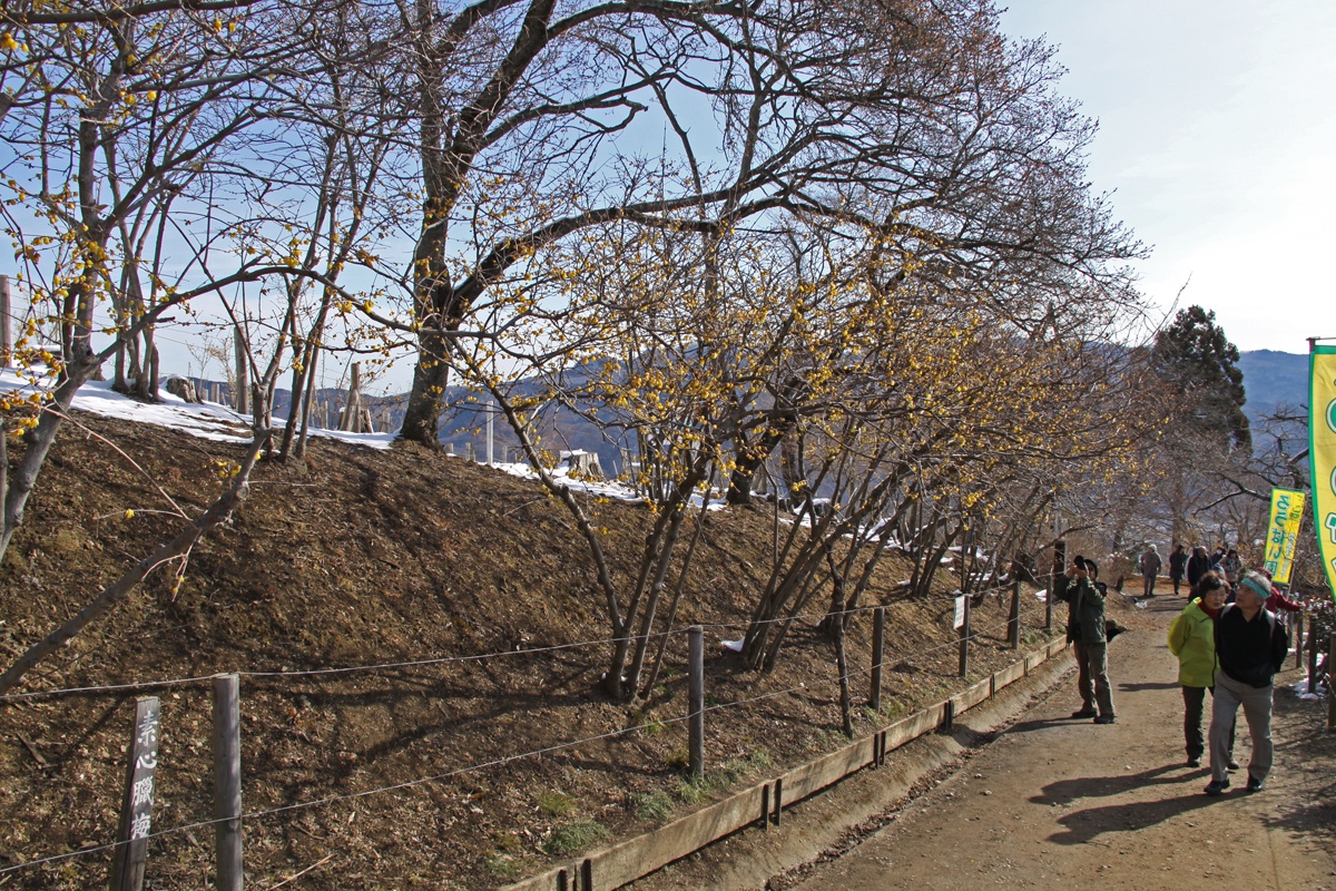 西ロウバイ園(ロープウェイ山頂駅より奥の山頂付近)は、見頃