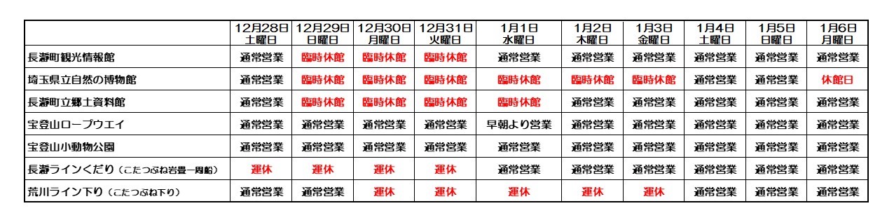 2019年12月28日時点で、長瀞町観光協会で調べた情報です。