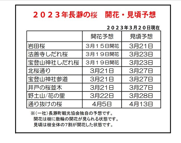 2023年長瀞桜の開花・見頃予想 3/20更新