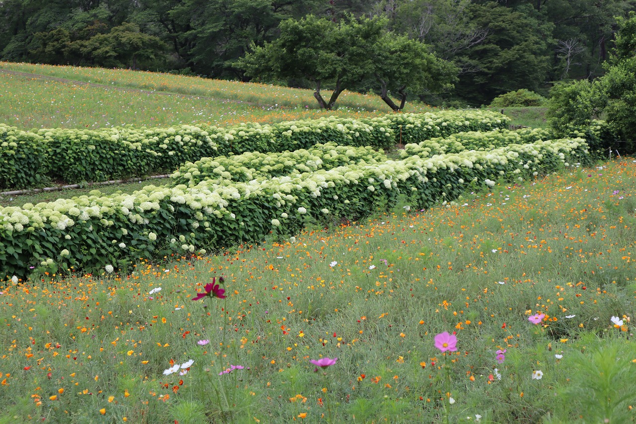 2024年6月10日 アナベル開花状況 2024.6.10 アジサイ 長瀞観光情報 花情報 6月10日午後の、アナベルの開花状況です。 ライトグリーンの中に、淡い白色の花が増えてきました。 アナベルの全体の約4割近くが開花しております。 今しか見られない、ハナビシソウとのコラボレーションをどうぞお楽しみください!