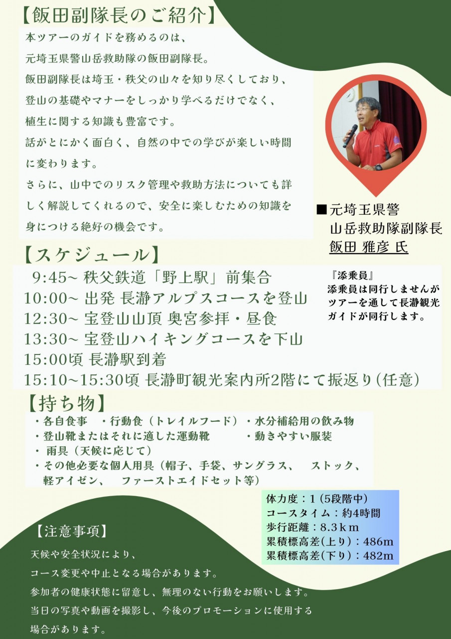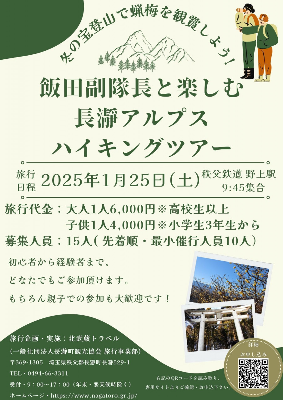 飯田副隊長と楽しむ長瀞アルプスハイキングツアーのお知らせです!