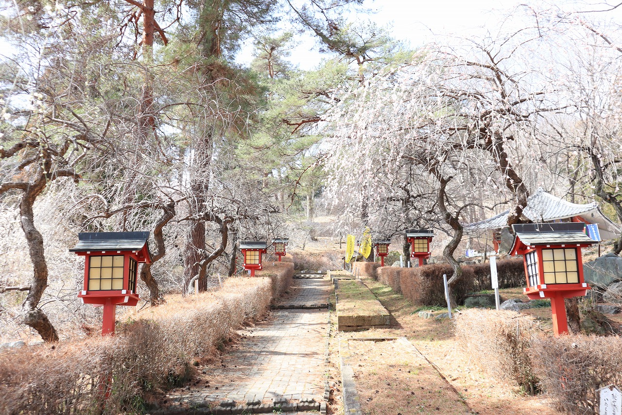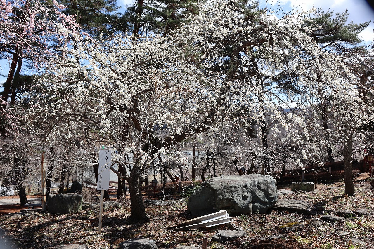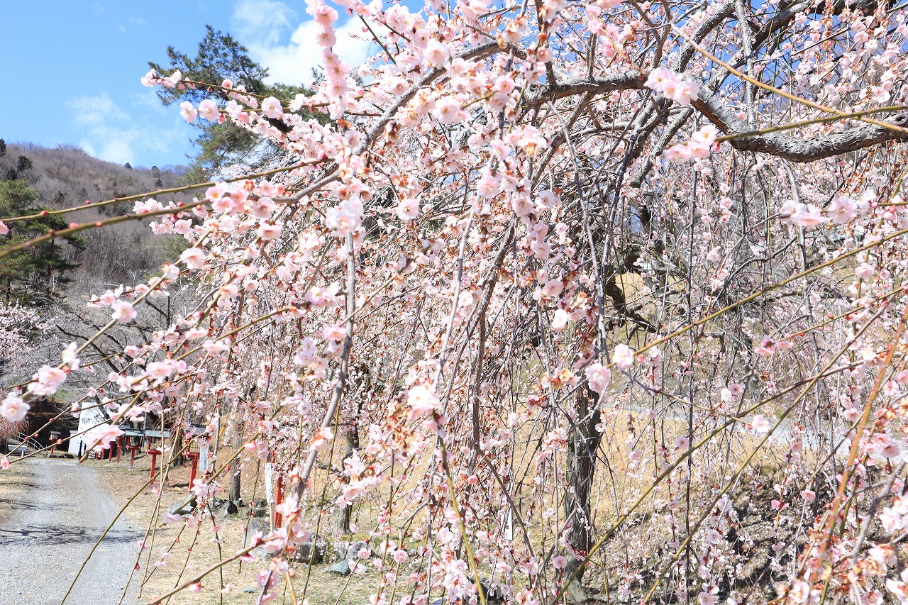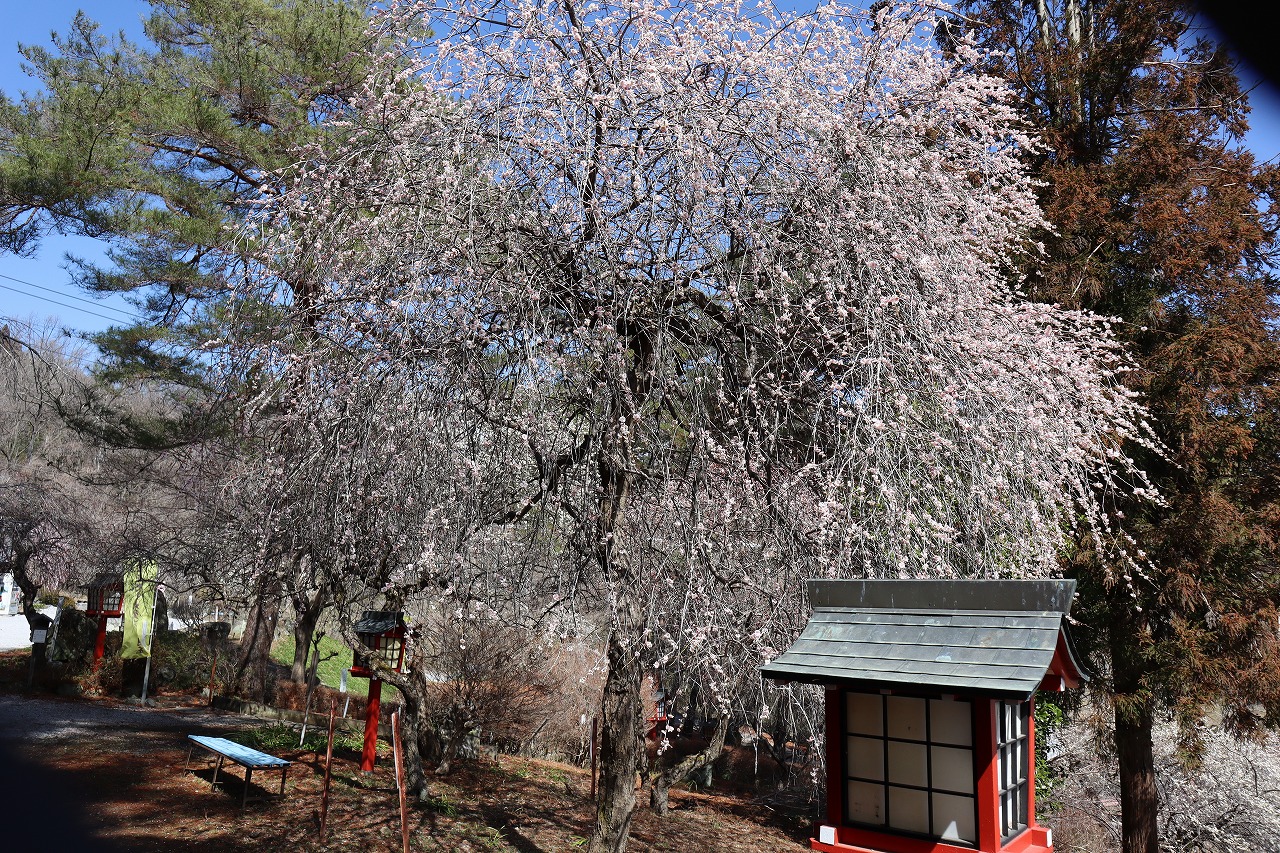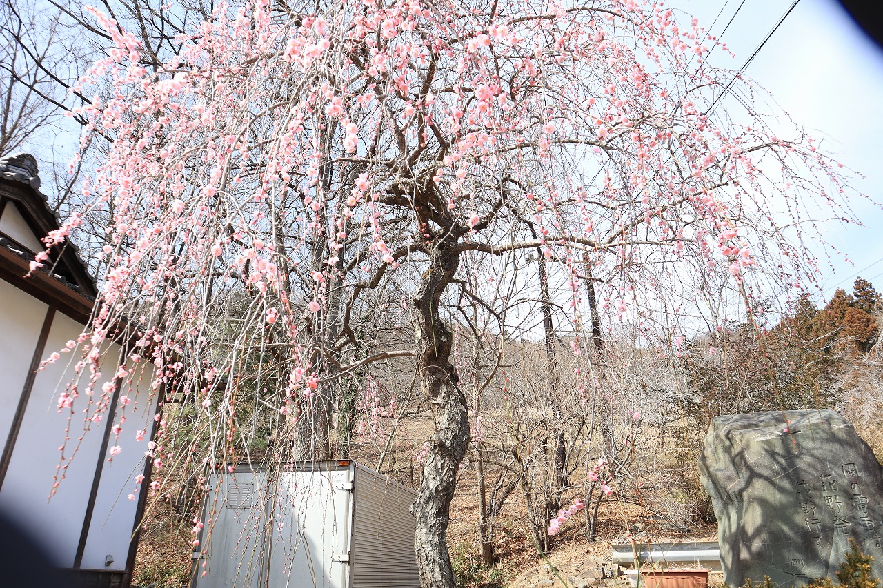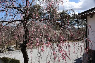 不動寺のしだれ梅・・・5部咲き、木によっては見頃迎えています。