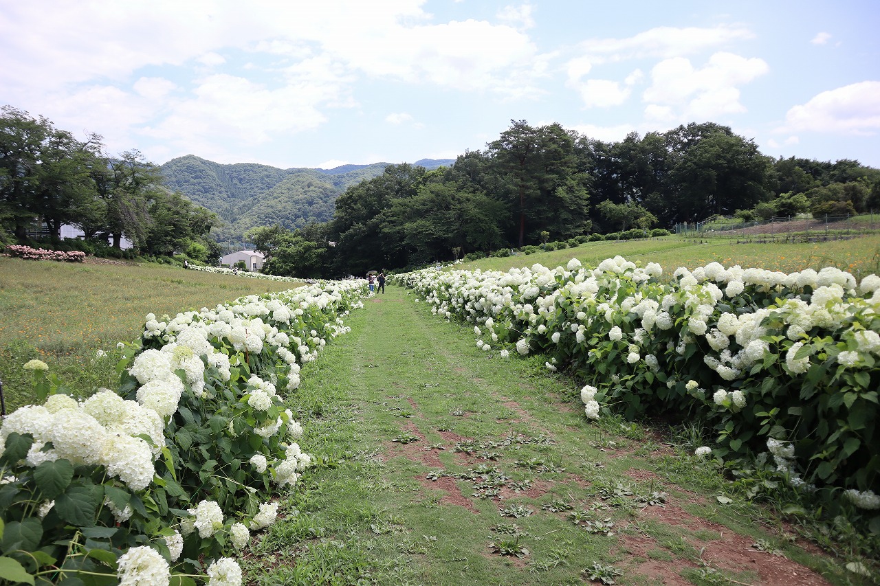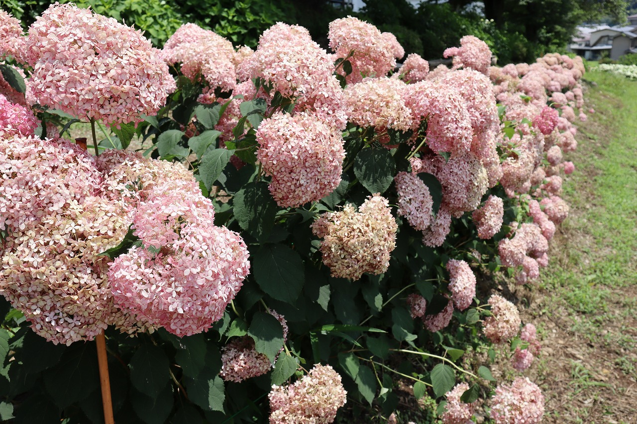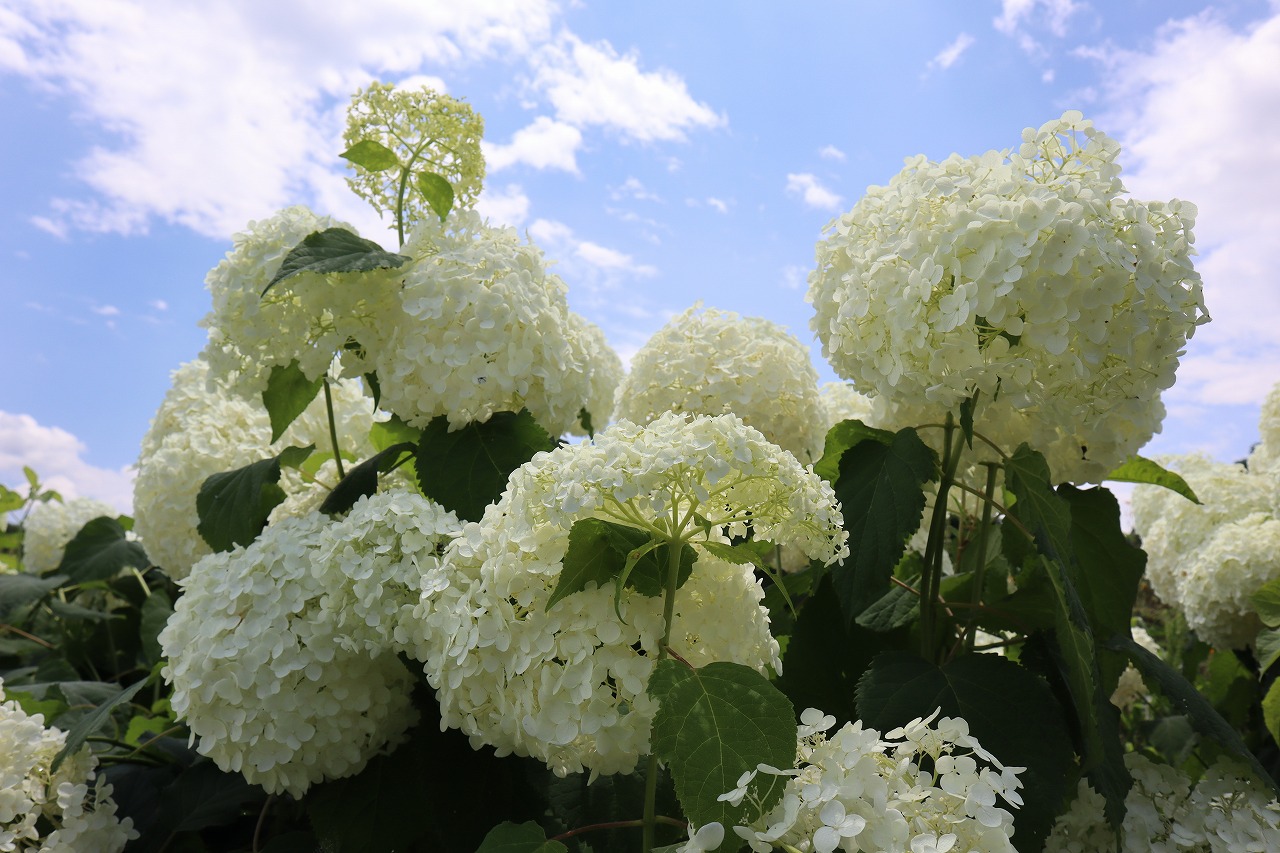 花の里 長瀞のアナベル・アジサイ・ハナビシソウの開花状況です。