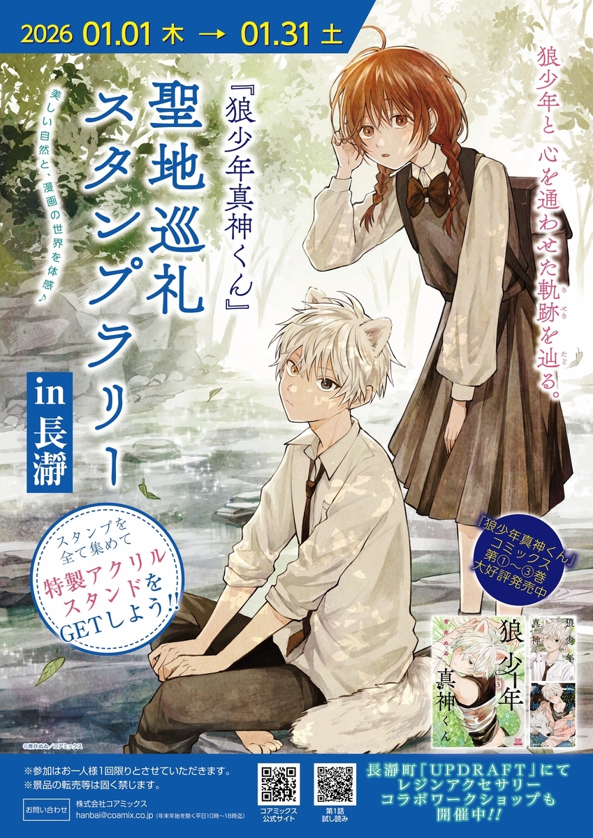 2025年12月27日 『狼少年真神くん』聖地巡礼スタンプラリー開催! 長瀞観光情報 1月1日~1月31日まで『狼少年真神くん』聖地巡礼スタンプラリー in 長瀞が開催されます。 【スタンプ設置スポット(全6箇所)】 長瀞駅 長瀞町観光案内所 宝登山ロープウェイ 山頂駅 宝登山小動物公園 花の里(長瀞蔵) UPDRAFT スタンプ3つでオリジナルカード、コンプで「描き下ろし特製アクリルスタンド」をget。 さらに、コンプリート達成者より抽選で「 直筆サイン入り複製原画」(3名様)が当たるかも! ぜひ、挑戦してみてください。