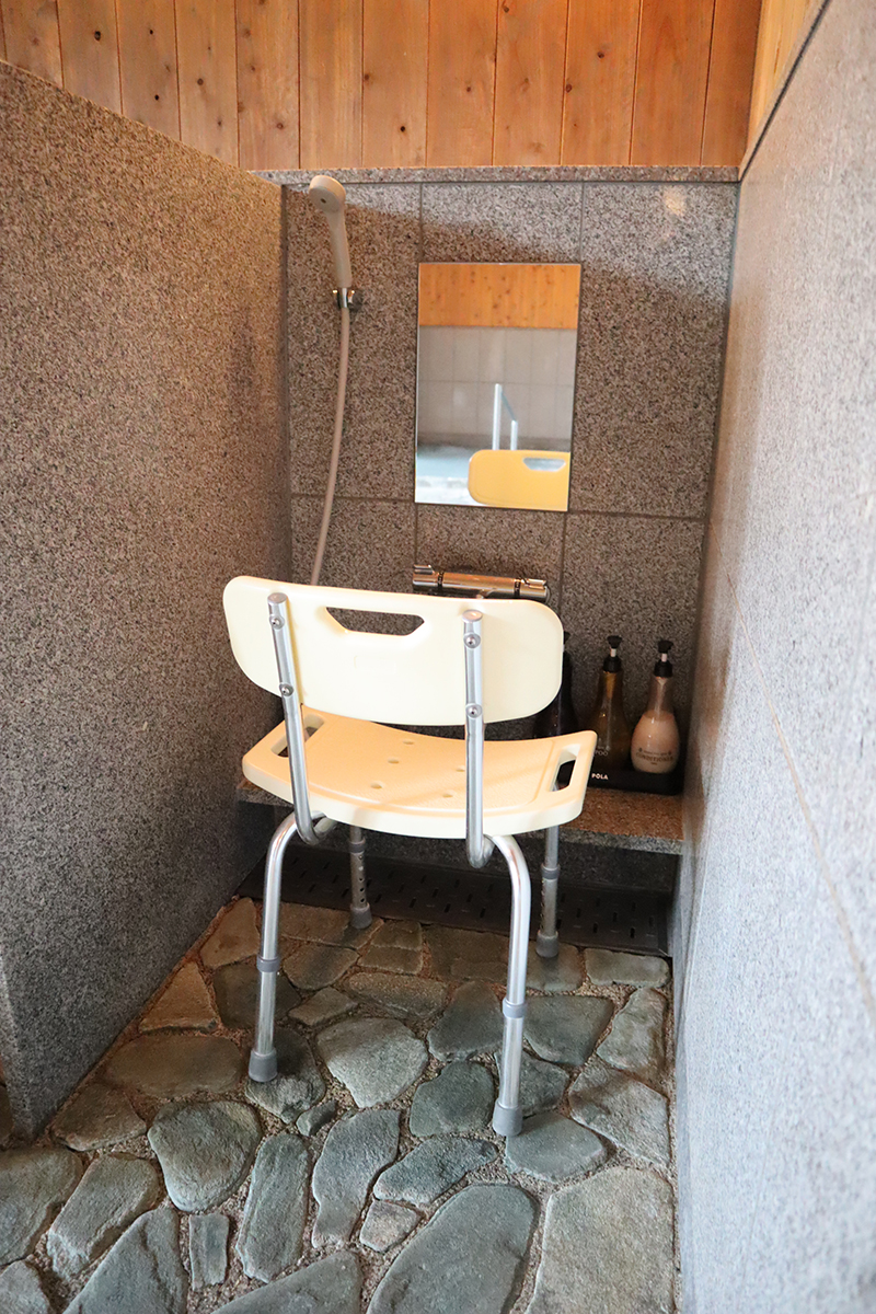 The bath is warm and cozy, using pure cypress wood and clear water from Mt. Jomine. You can feel the pleasant fresh air from Lake Shinryu as you take a bath.