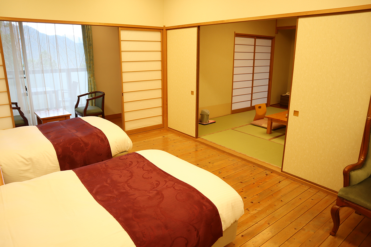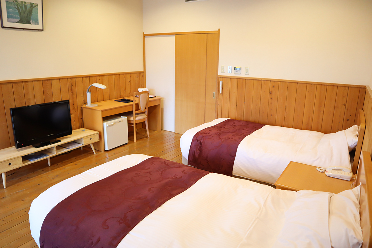 Western-style room with twin beds, no steps from the entrance, and wheelchair accessible.