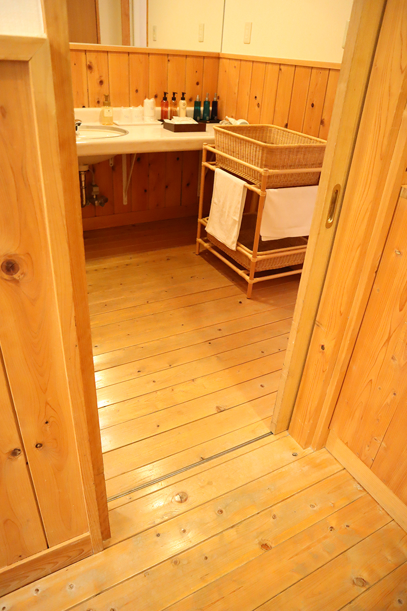| Restroom (Toilet) | Western-style toilet (※1Washlet), retractable door, 57cm wide entrance, a 2cm step, no handrails |