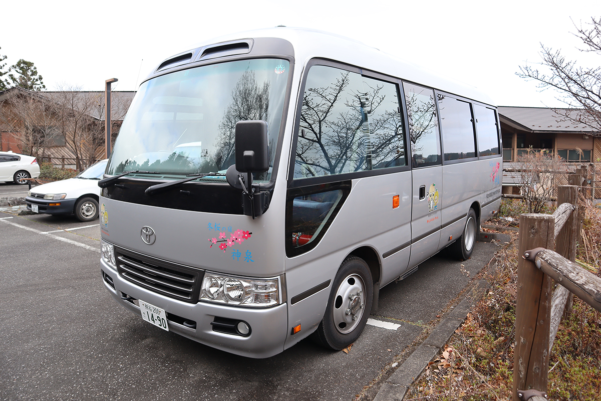 Depart from Kamiizumi Branch Office bus stop around 3:00 p.m./Depart from the hotel (to Kamiizumi Branch Office bus stop) around 10:00 a.m. |