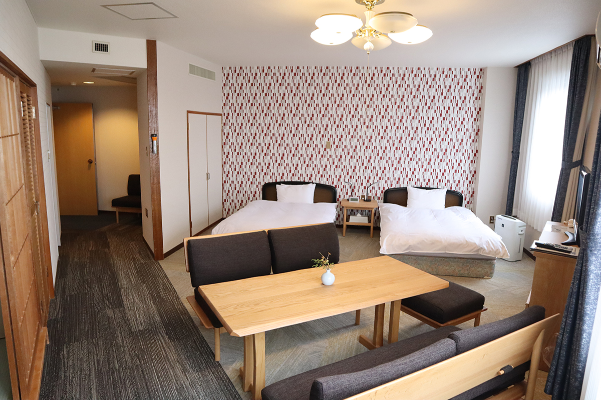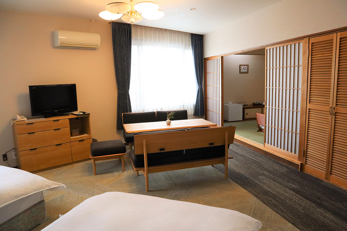2ベッド+6畳和室付きの特別和洋室です。テーブルやソファーもあり広々とした室内でごゆっくりお過ごしいただけます。