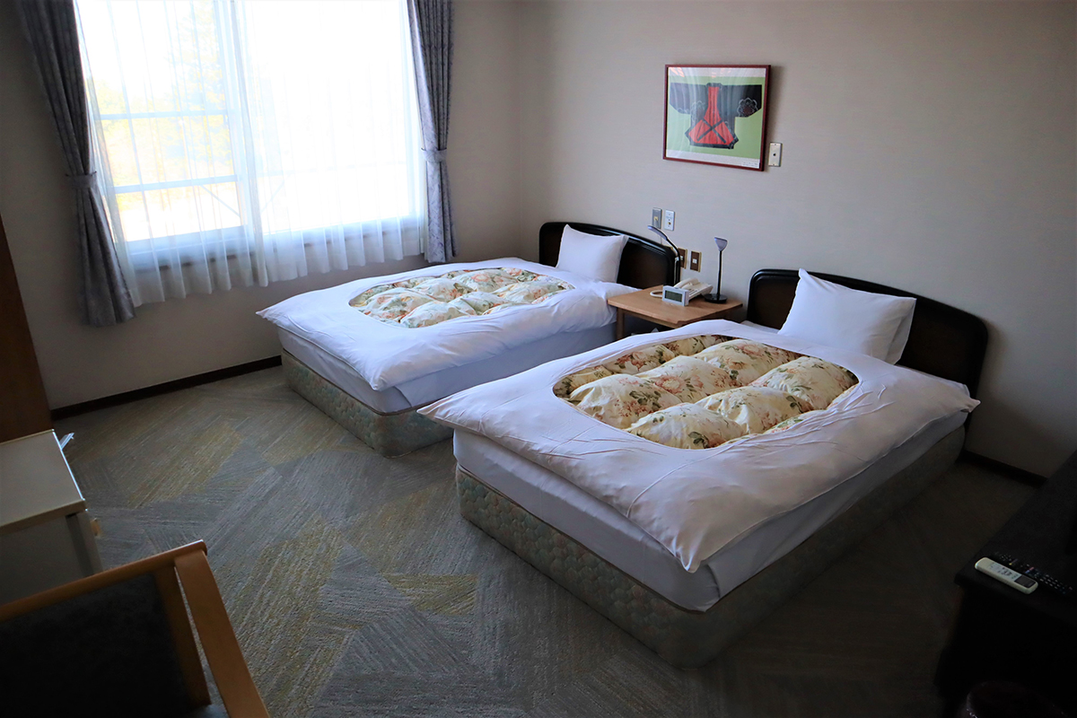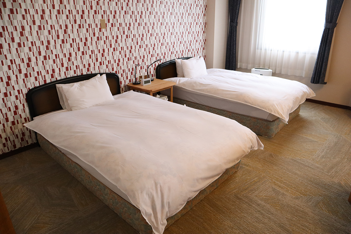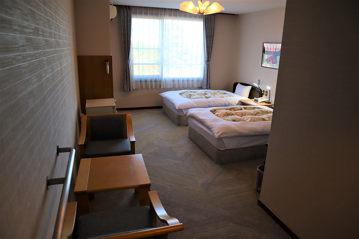 2ベッド+シャワールームの洋室で車いすのまま利用できます。トイレやシャワールームも広々としておりバリアフリー対応のお部屋です。