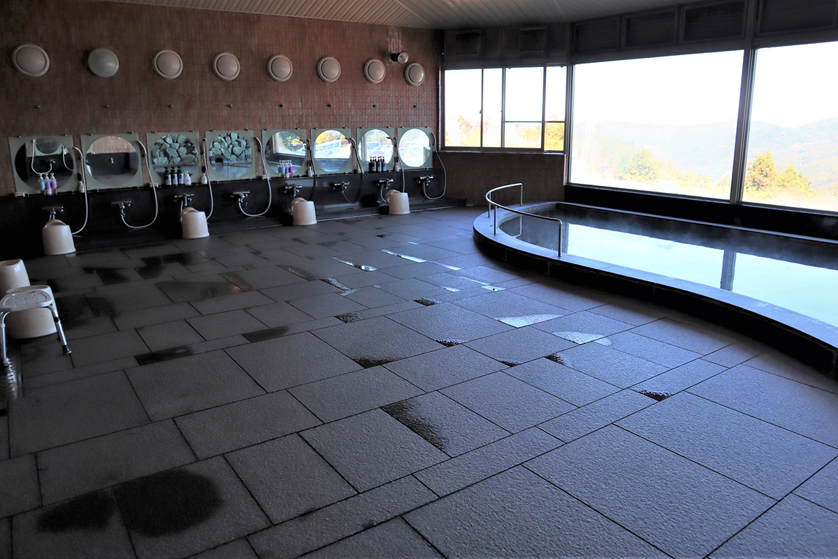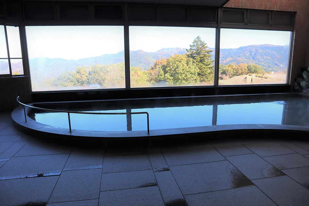 天然温泉でくつろぎながら、四季折々の景色が堪能できる大展望風呂。保湿効果で身体の芯まで温まります。