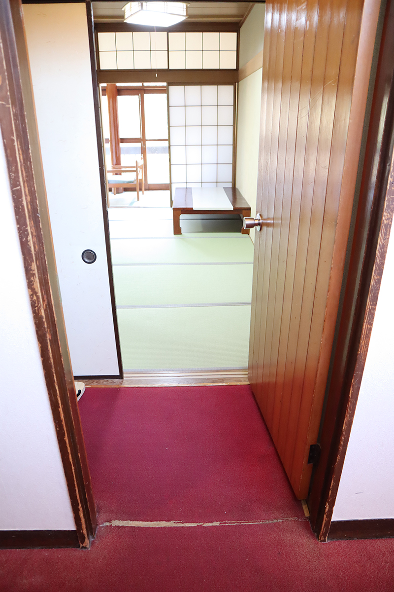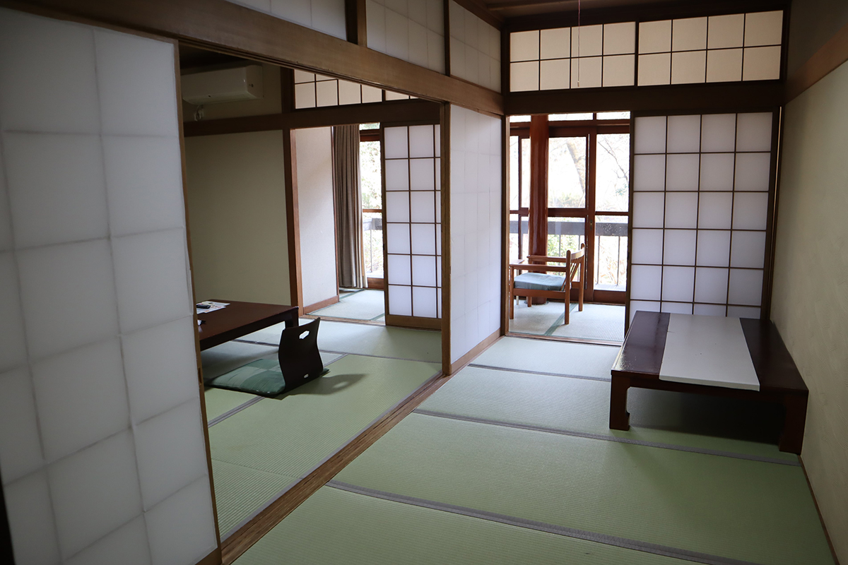 和室10畳+次の間5畳の広々したお部屋です。室内はフラットでほぼ段差はありません。車いすのまま入室できます。