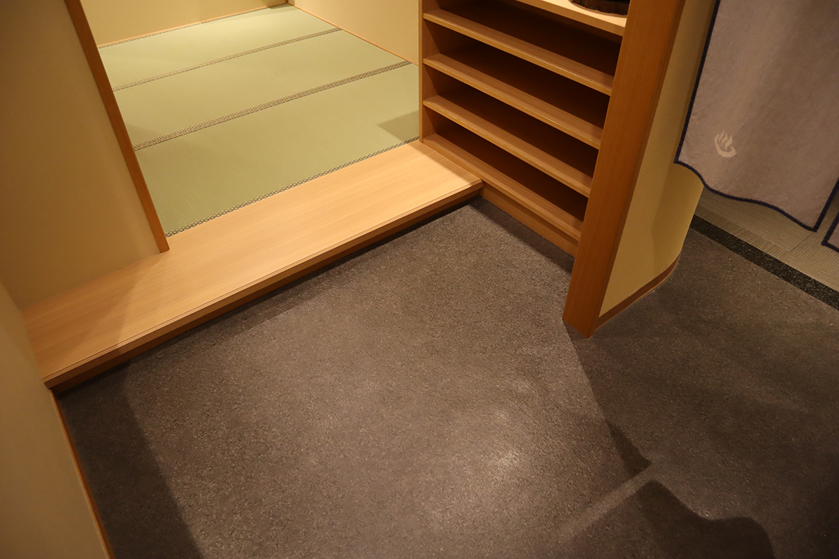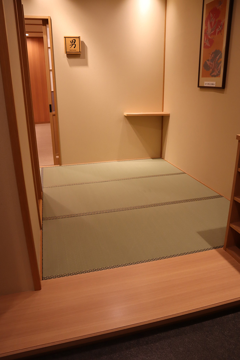 | 入口 | 【夕食会場(個室)】 ・テーブル席 入口幅76cm、段差なし ・掘りごたつ 入口幅77cm、段差17cm×2段 【朝食会場(広間)】 入口幅160cm、段差9cm |