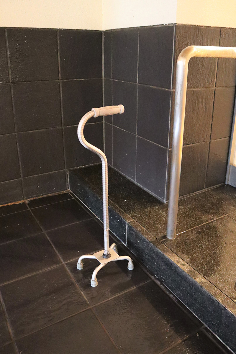 | 浴室 | スライド式ドア、入口幅87cm、浴槽高さ50cm、浴槽の淵幅狭い、シャワーチェア貸出あり、手すりあり |