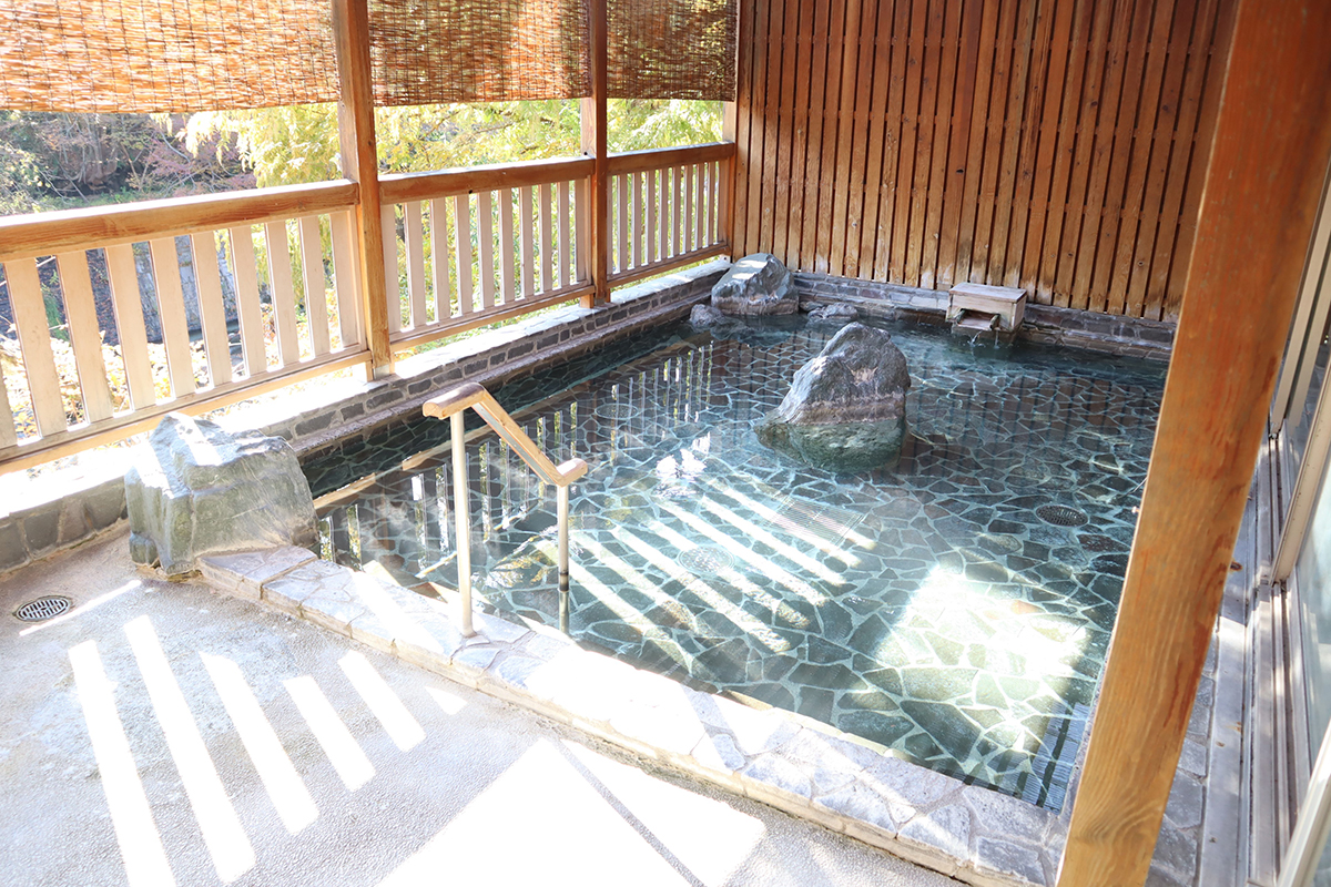 古い歴史を持つ和銅鉱泉の“薬師の湯”は、目薬や切傷に使用し特攻したと伝えられております。横瀬川の風に当たりながら、桜や紅葉をご覧いただける絶景風呂です。