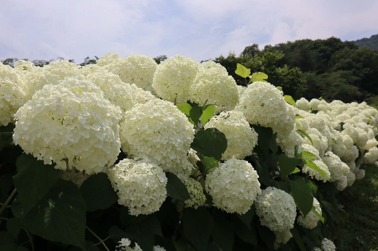 花の里 長瀞のアジサイ・アナベルの開花状況です。