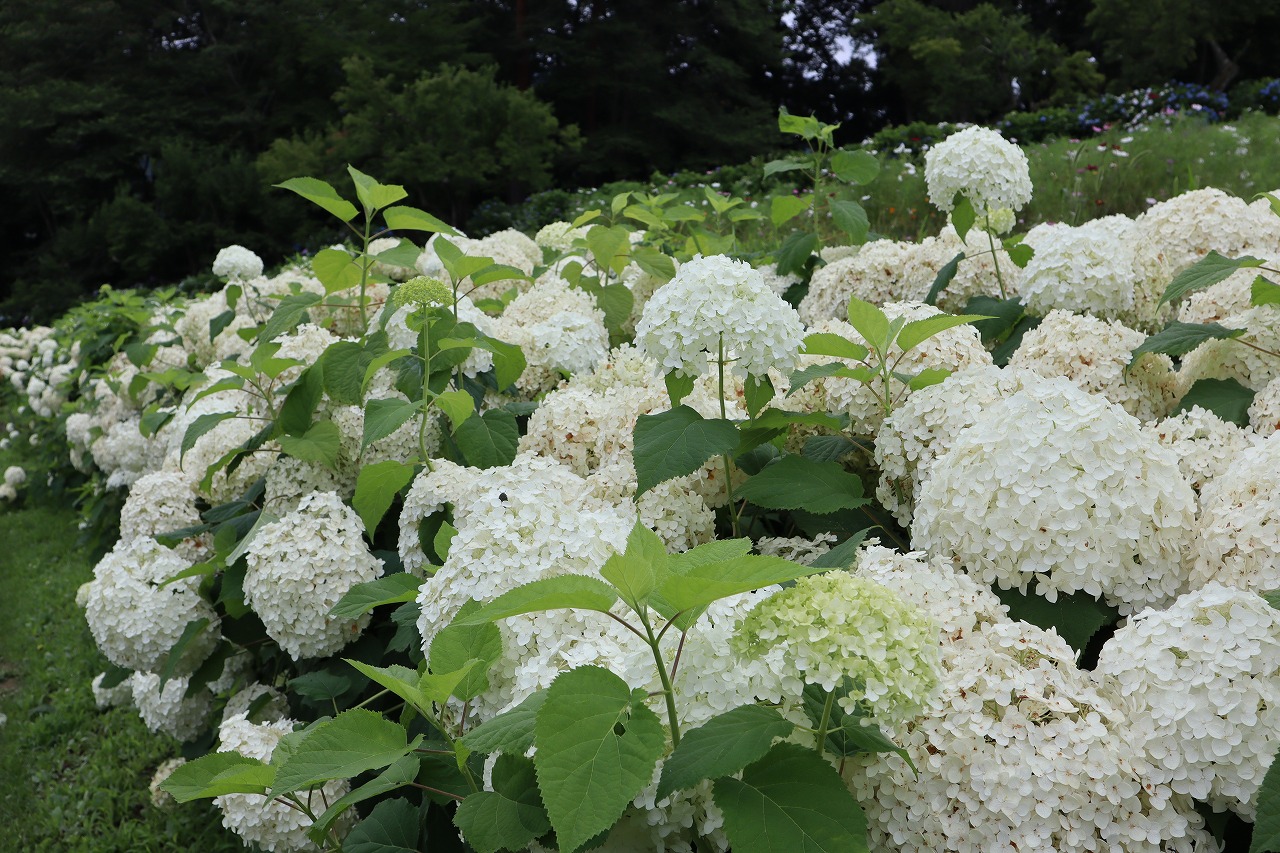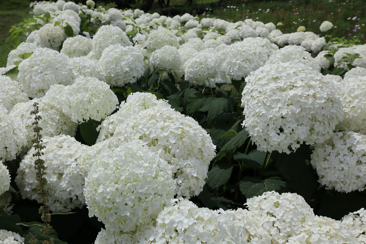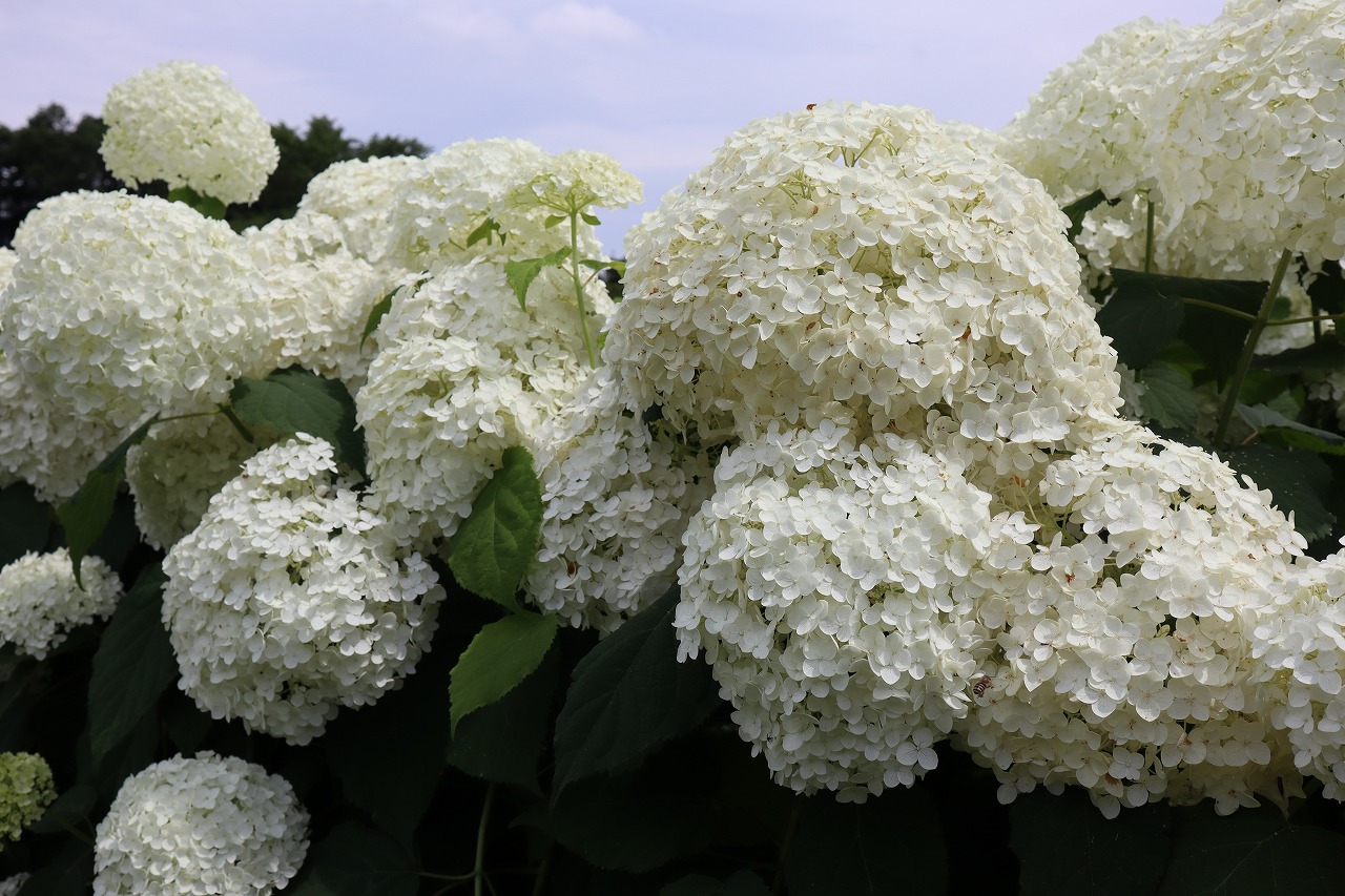 「アナベル」・・・見頃のピークは過ぎていますが、遅咲きのアナベルは綺麗にご覧いただけます。