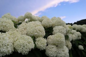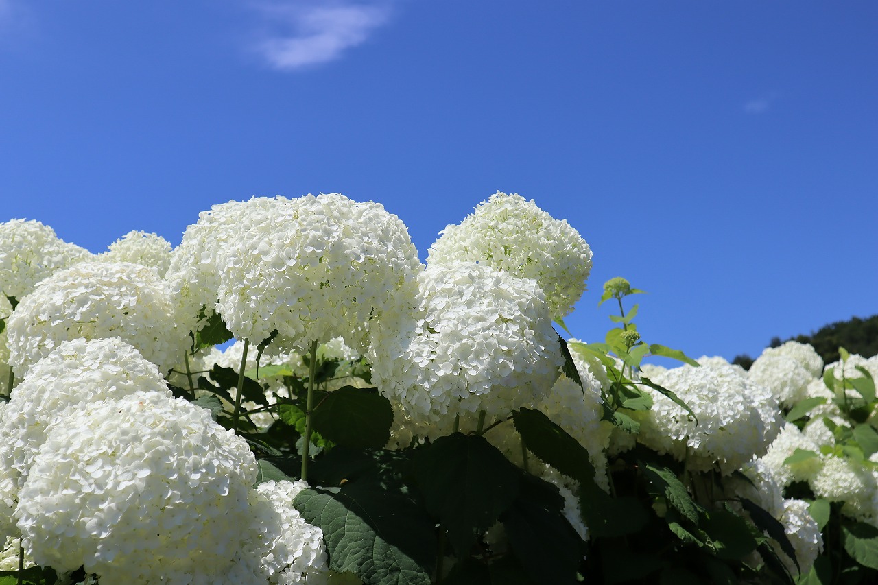2024年6月16日 アナベル開花状況 2024.6.16 アジサイ 長瀞観光情報 花情報 6月16日、夕方4時のアナベルの開花状況です。 本日は快晴、真夏のような太陽です。 アナベルの全体の約8割近くが開花しております。 あと一週間ほどで満開になりそうです。 青空に白いアナベルが雲海のように見えます。
