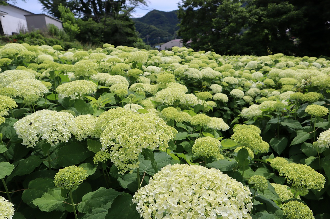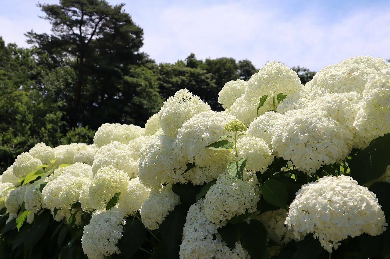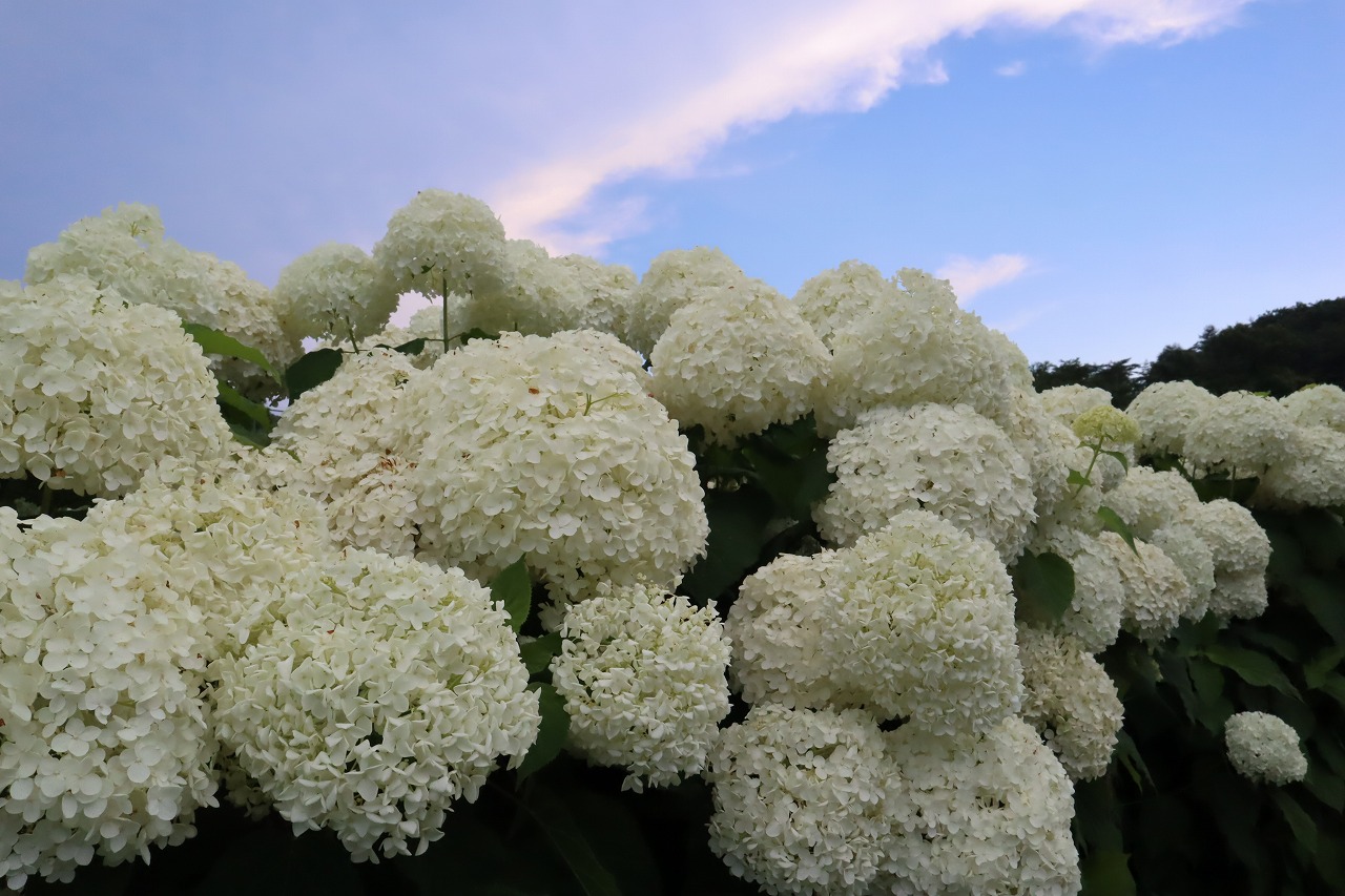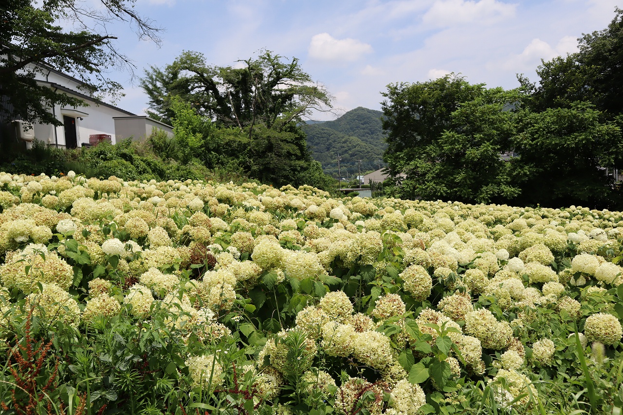 2024年6月19日 アナベル開花状況 2024.6.19 アジサイ 長瀞観光情報 花情報 6月19日、夕方4時のアナベルの開花状況です。 昨日の大雨から一転、澄み渡る青空です。 アナベルの全体の約9割近くが開花しております。 まもなく見頃を迎えます。 美しいアナベルが皆様をお待ちしております♪