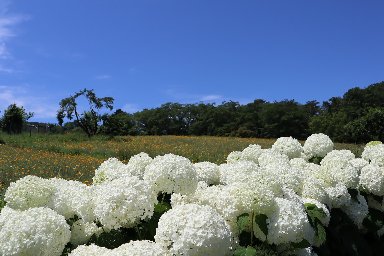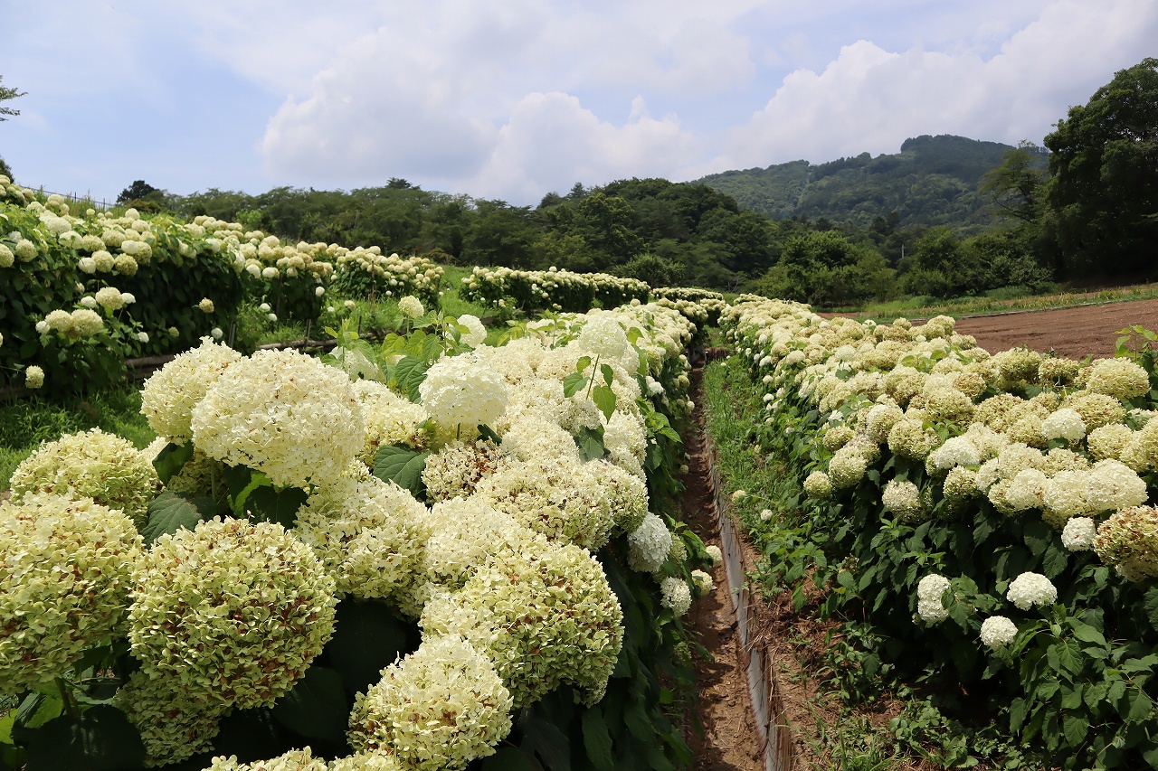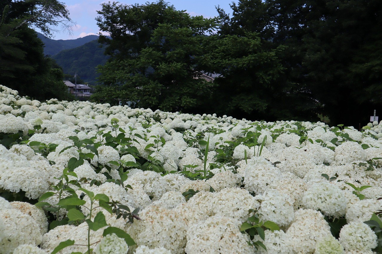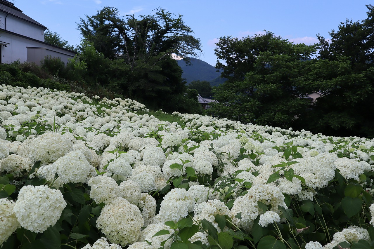 2024年6月19日 アナベル開花状況 2024.6.19 アジサイ 長瀞観光情報 花情報 6月19日、夕方4時のアナベルの開花状況です。 昨日の大雨から一転、澄み渡る青空です。 アナベルの全体の約9割近くが開花しております。 まもなく見頃を迎えます。 美しいアナベルが皆様をお待ちしております♪