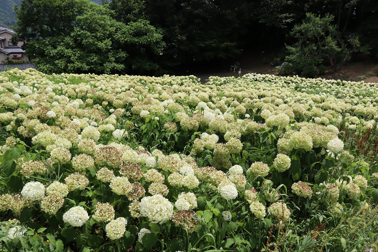 2024年7月6日 アナベル開花状況 2024.7.6 アジサイ 長瀞観光情報 花情報 7月6日、午前のアナベルの開花状況です。 アナベルの花が緑色になっている物も多く、見頃は過ぎている状態です。 見頃は過ぎておりますので、今年度のアナベル開花情報の更新は本日にて終了とさせて頂きますが、 最後まで皆様のお越しをお待ちしております。