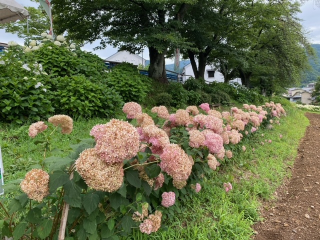 2024年7月3日 アナベル開花状況 2024.7.3 アジサイ 長瀞観光情報 花情報 7月3日、午前のアナベルの開花状況です。 見頃は過ぎており、雨で多少花も下がってしまっていますが、 午後から晴れの予報なので雨露でキラキラ輝くアナベルを見られるはずですよ! 皆様、どうぞお越しくださいませ!