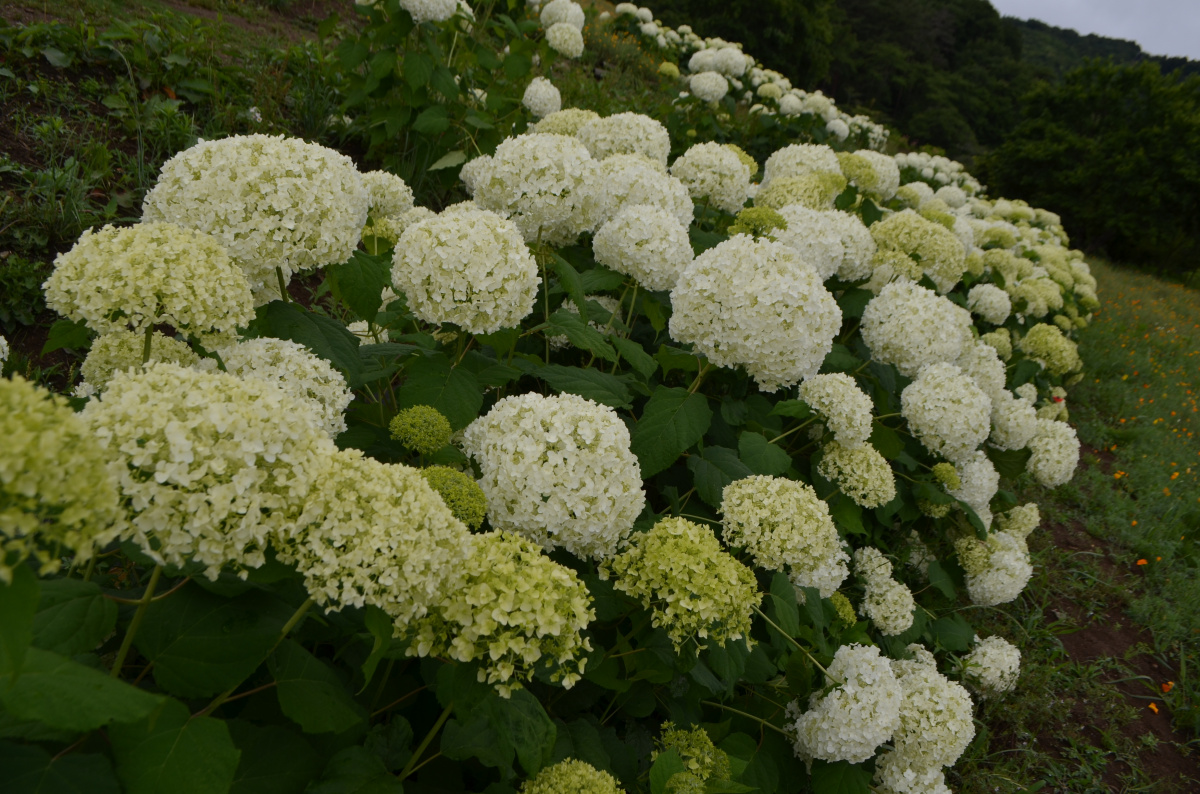 2020年6月19日 長瀞アナベル開花状況2020.6.19 アジサイ 長瀞観光情報 花情報 6月20日より、花の里が開園いたします。 花の里では、アナベルが見頃をむかえています。 一部、倒れているものもあります。 お越しの際は、新型コロナウイル感染防止対策を行ったうえで、お越しください。 また、各施設をご利用の際は、施設の感染防止対策にご協力をお願いします。