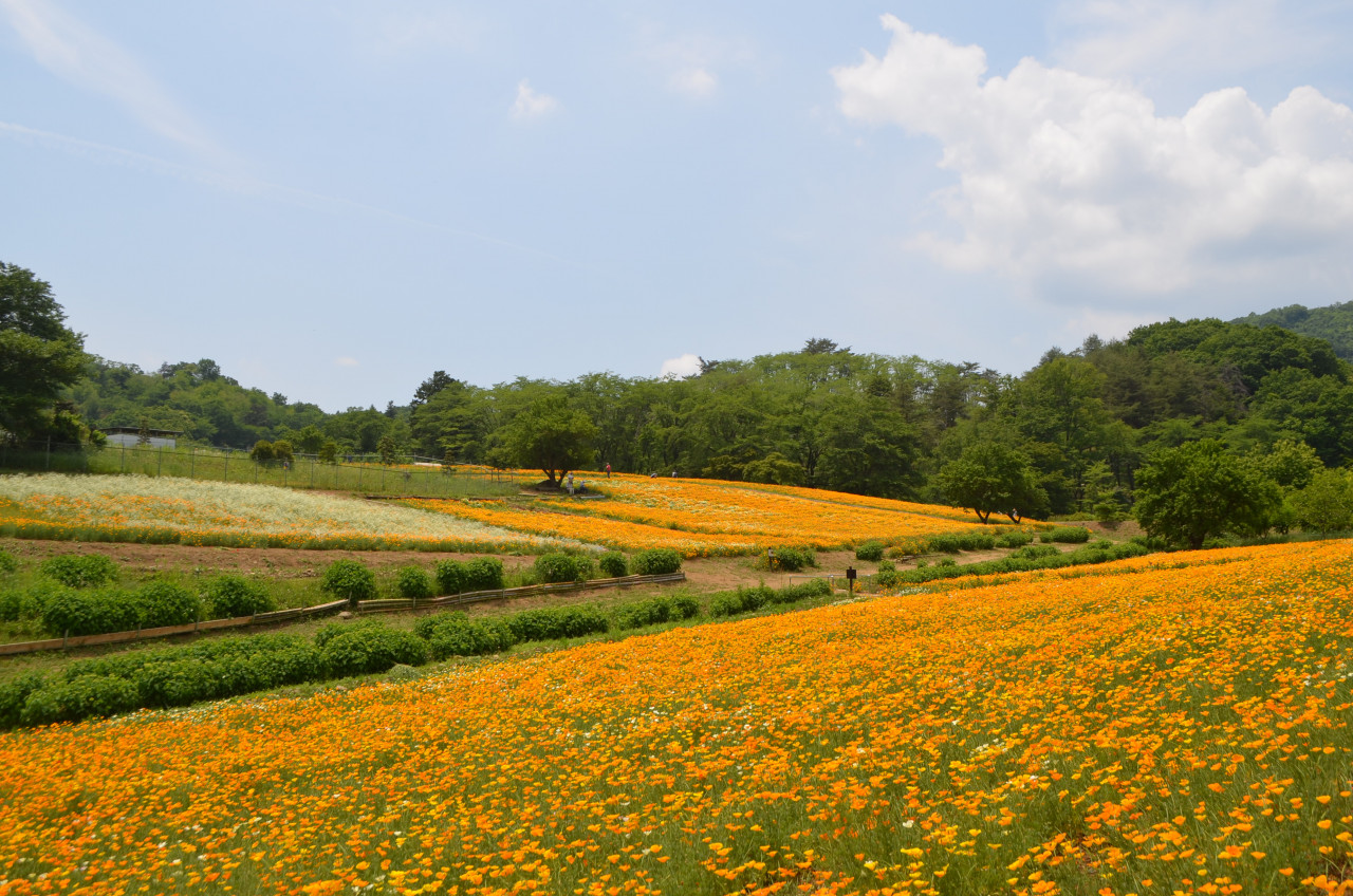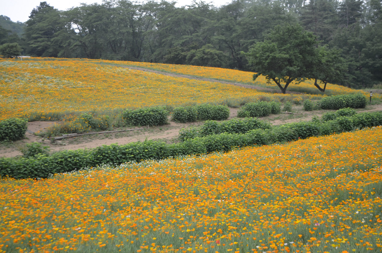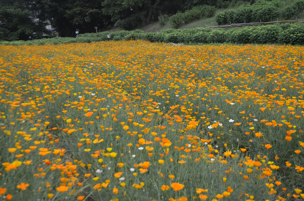 2019年6月8日 花の里「ハナビシソウ・アナベル」開花情報2019.6.8 アジサイ 長瀞観光情報 花情報 ハナビシソウ ハナビシソウ・・・見頃(中央面) 散り始め(北面・南面) アナベル・・・咲き始め