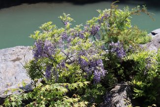 国指定名勝及び天然記念物の「岩畳」に自生している藤は、昔、大阪の野田が藤の名所だったことから「ノダフジ」とも呼ばれています。