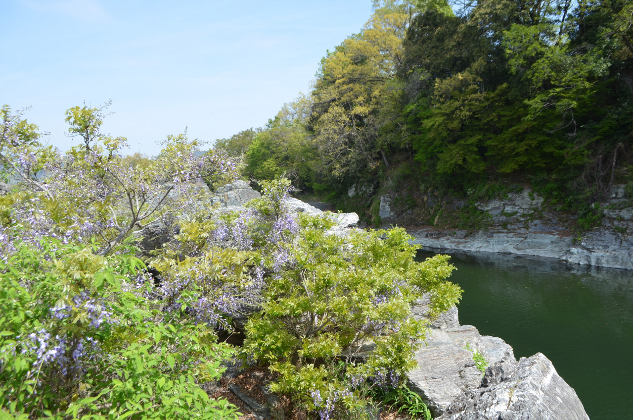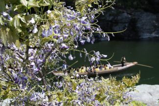 2022年5月2日 長瀞 藤(岩畳)開花情報 2022.5.2 藤 長瀞観光情報 花情報 岩畳にございます「ノダフジ」の開花状況をお伝え致します。 2022年5月2日現在、見頃過ぎとなりました。 ですが、前日の雨もあり本日の岩畳は一段と素晴らしい景色となっております。 皆様のお越しをお待ちしております!