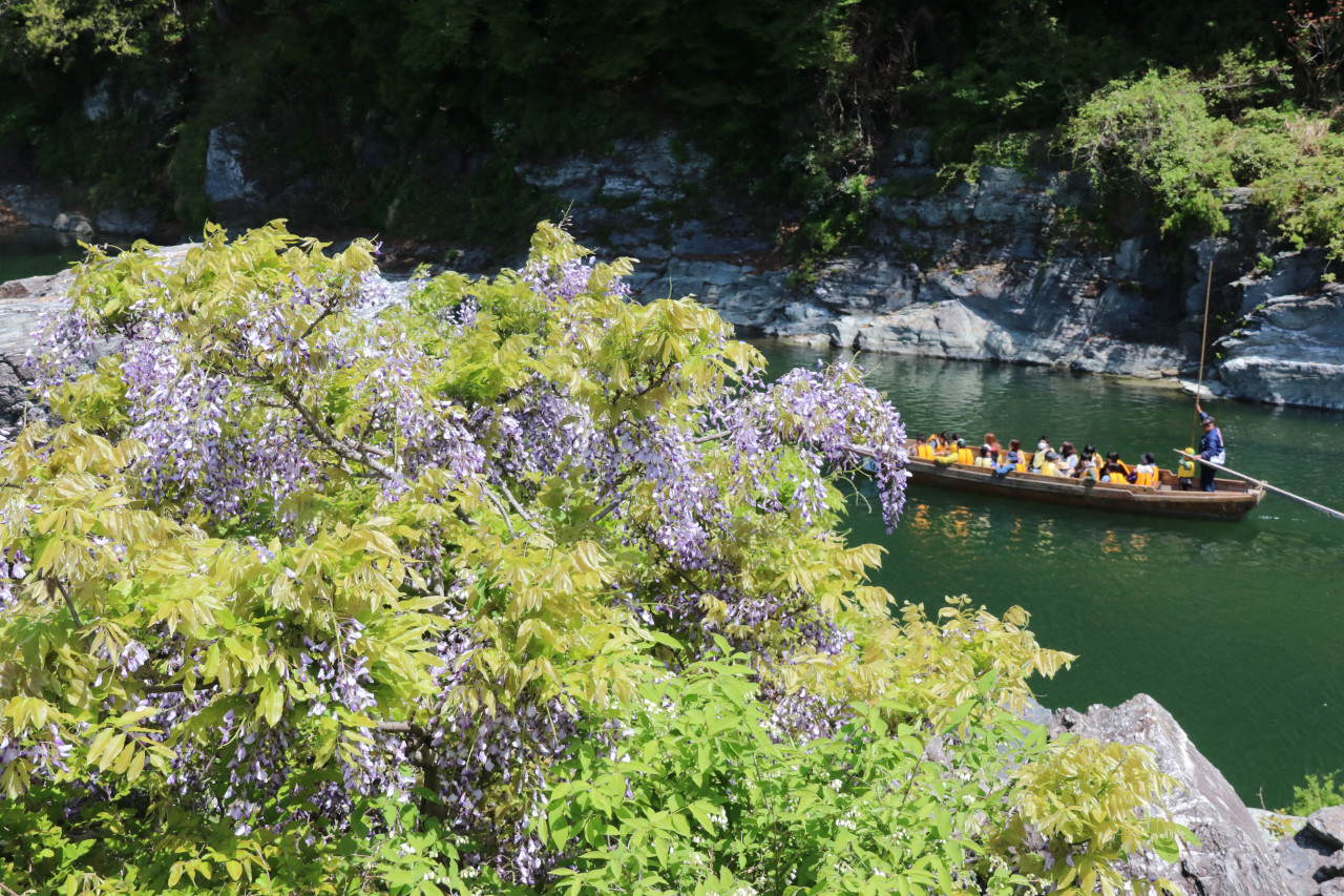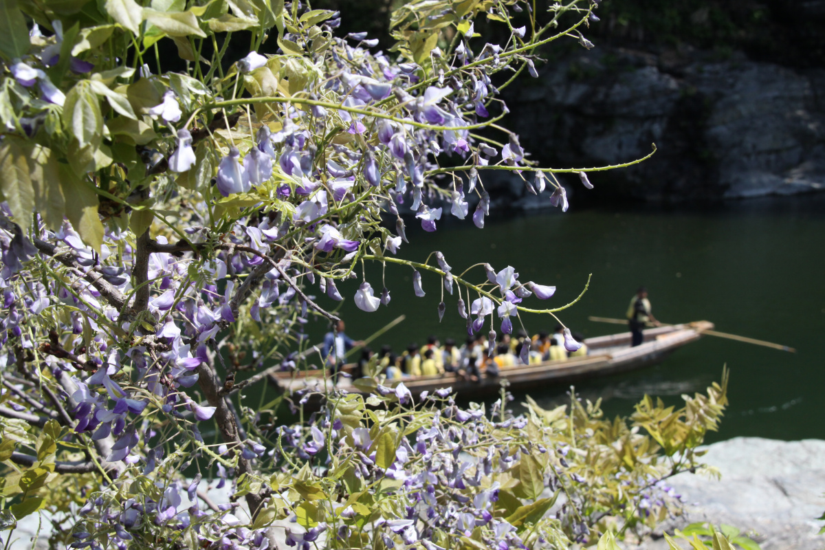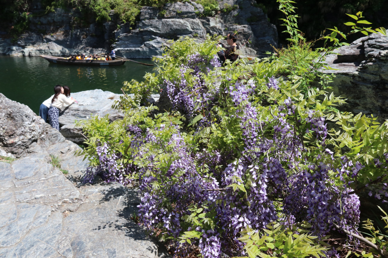 2023年4月24日 長瀞 藤の開花情報 2023.4.24 藤 長瀞観光情報 岩畳にございます「ノダフジ」の開花状況をお知らせいたします。 ノダフジは、一部見頃を過ぎたものもございますが、 引き続き見頃を迎えております。