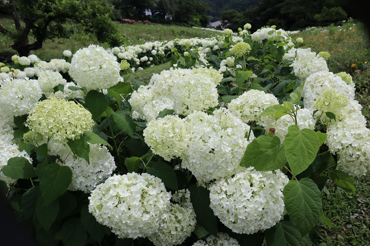2024年6月19日 アナベル開花状況 2024.6.19 アジサイ 長瀞観光情報 花情報 6月19日、夕方4時のアナベルの開花状況です。 昨日の大雨から一転、澄み渡る青空です。 アナベルの全体の約9割近くが開花しております。 まもなく見頃を迎えます。 美しいアナベルが皆様をお待ちしております♪