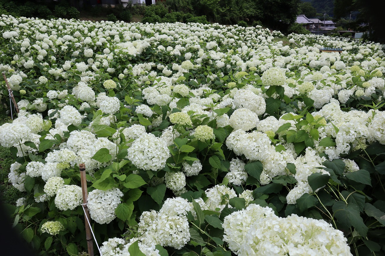 2024年6月22日 アナベル開花状況 2024.6.22 アジサイ 長瀞観光情報 花情報 6月22日、昨日の大雨から一転、日差しも暖かいですね。 アナベルは全体の約9割近くが開花しております。 昨日の雨露が光っていい感じですよ♪ 明日からしばらく天候が崩れてしまいますので、この機会をお見逃しなく!!