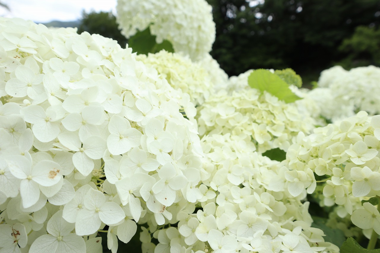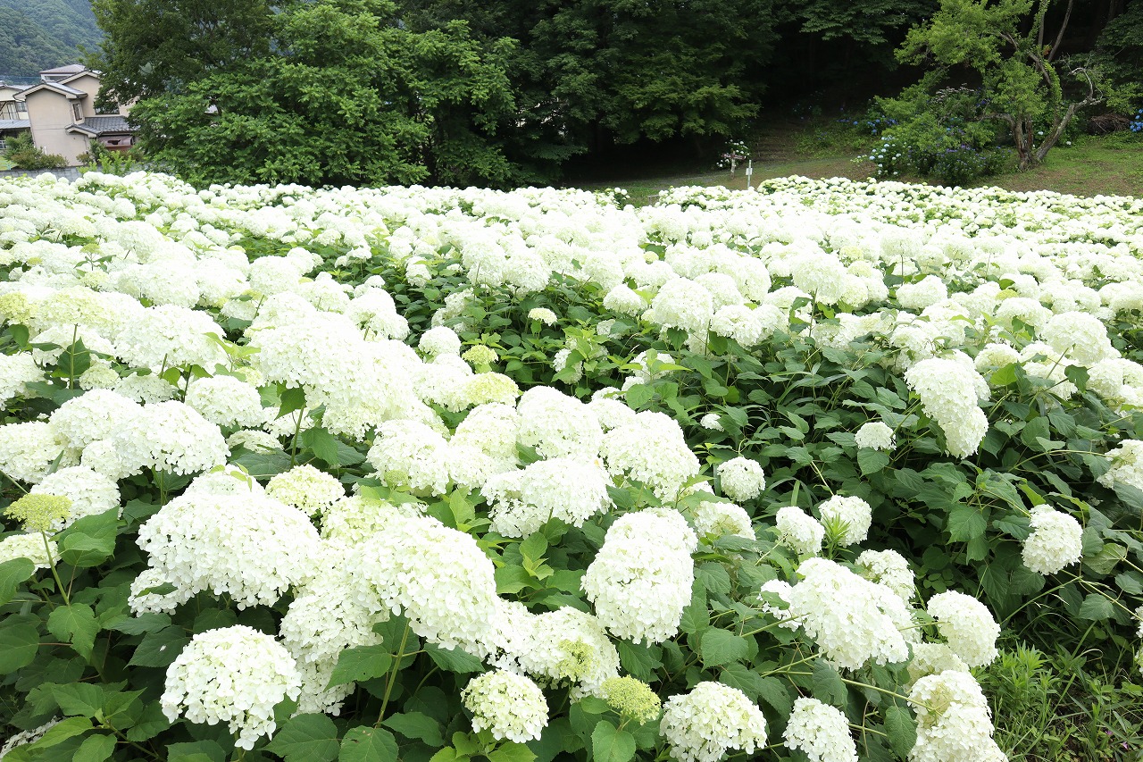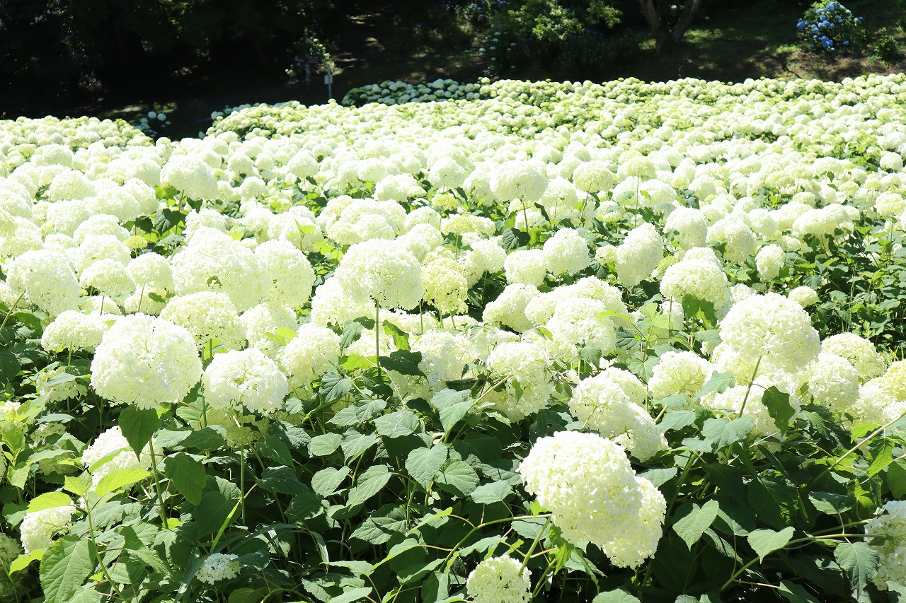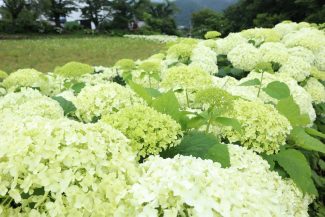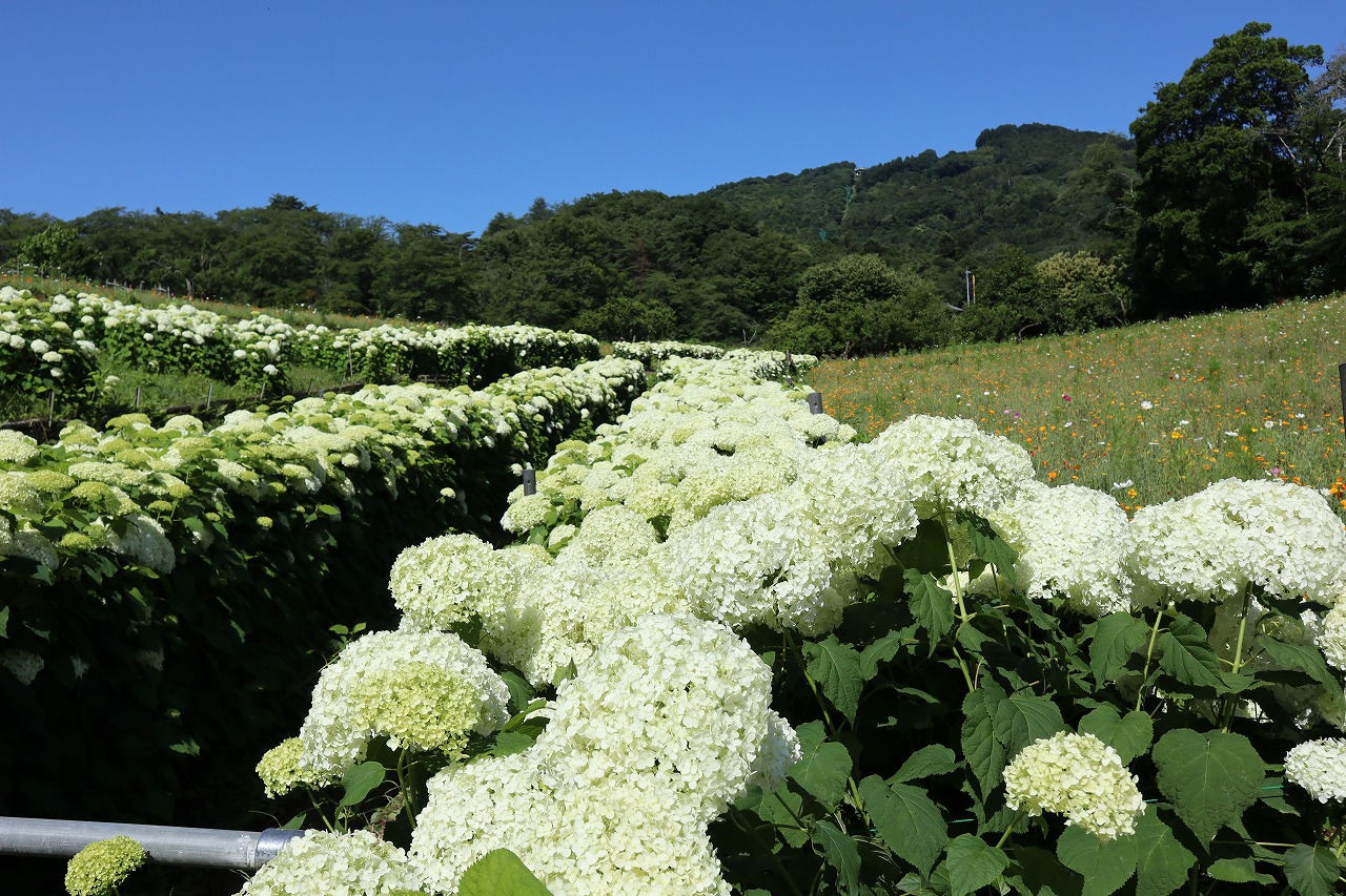 花の里 長瀞のアナベル・アジサイ・ハナビシソウの開花状況です。