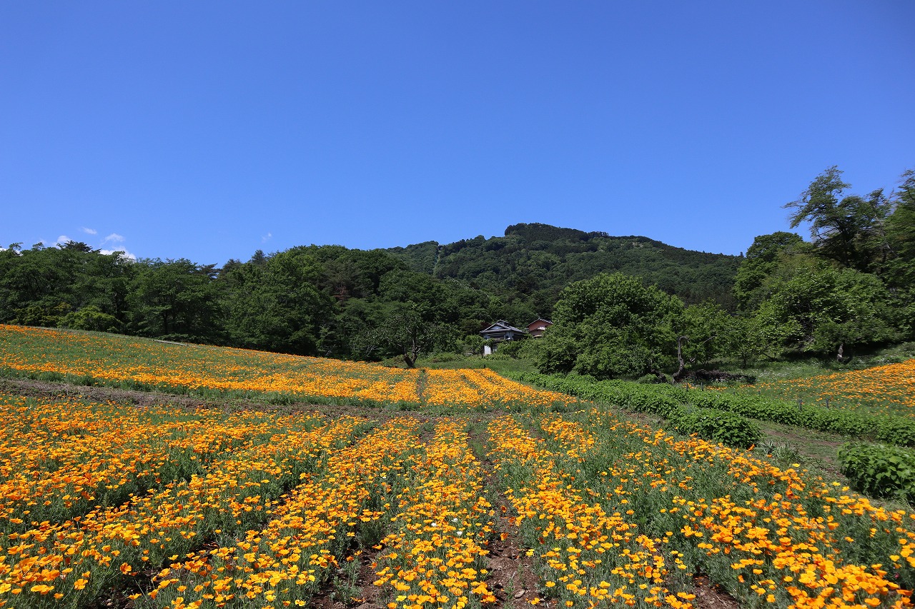 本日は朝から快晴で、青い空にオレンジの花がとても冴えて奇麗でした。