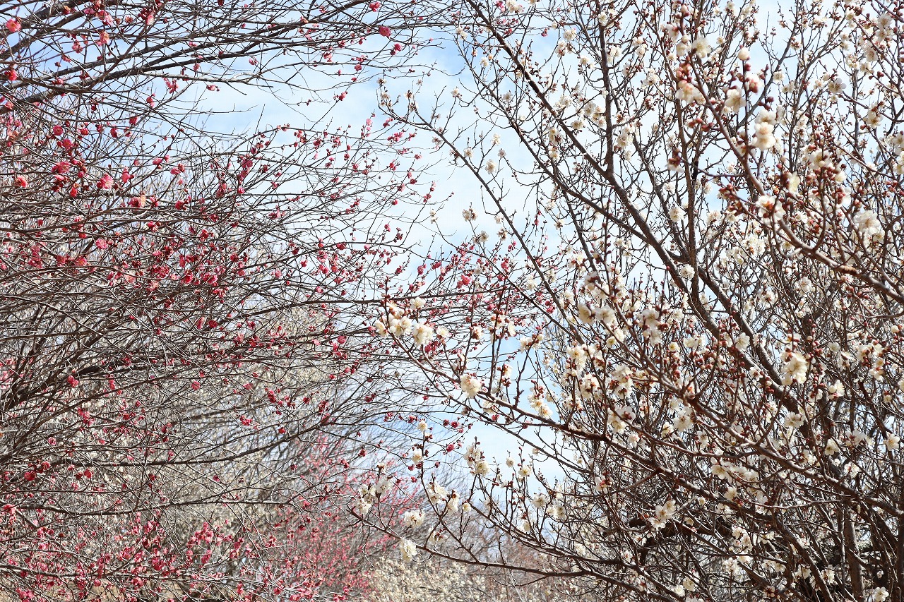 梅百花園・・・3〜4分咲き。一部開花が進んでいる木もあります。