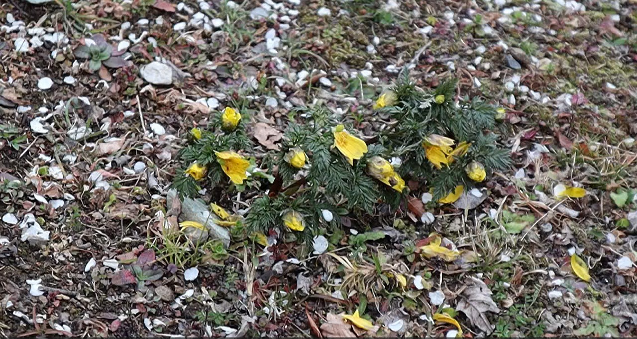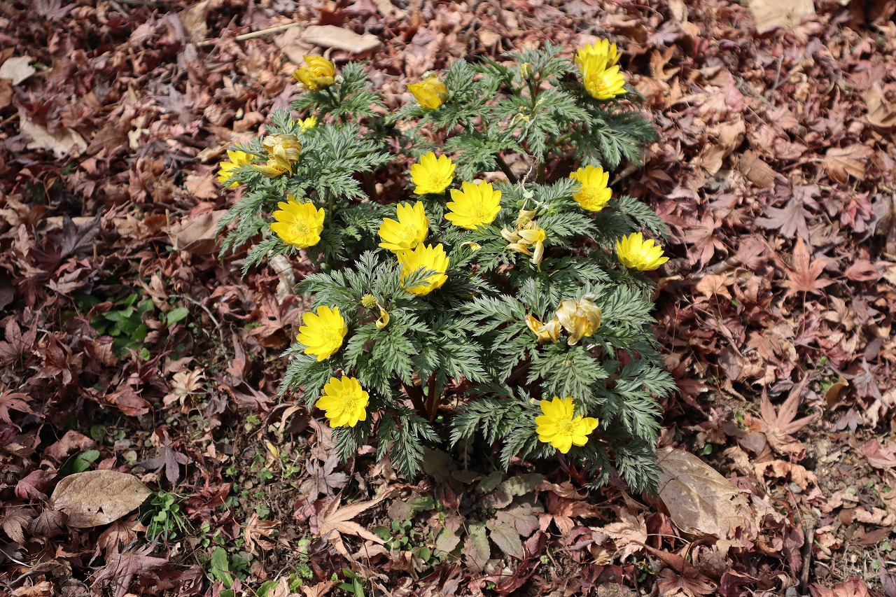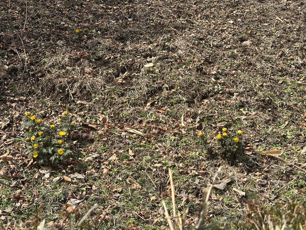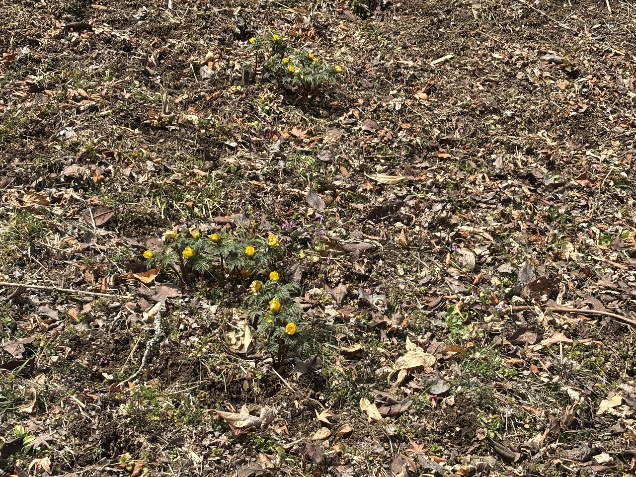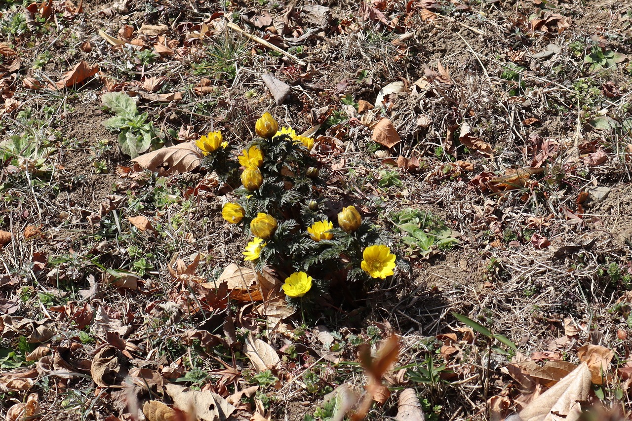 福寿草・・・開花。どこで咲いているか、探してみてください!!