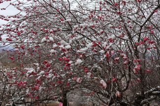 ❄昨日の雪が花に重なり、一層綺麗に見れました!