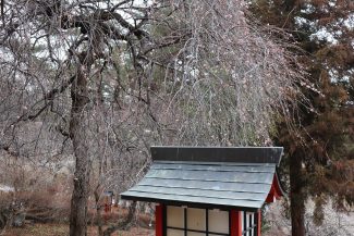 不動寺のしだれ梅・・・全体的につぼみですが、一部開花が進んでいます。