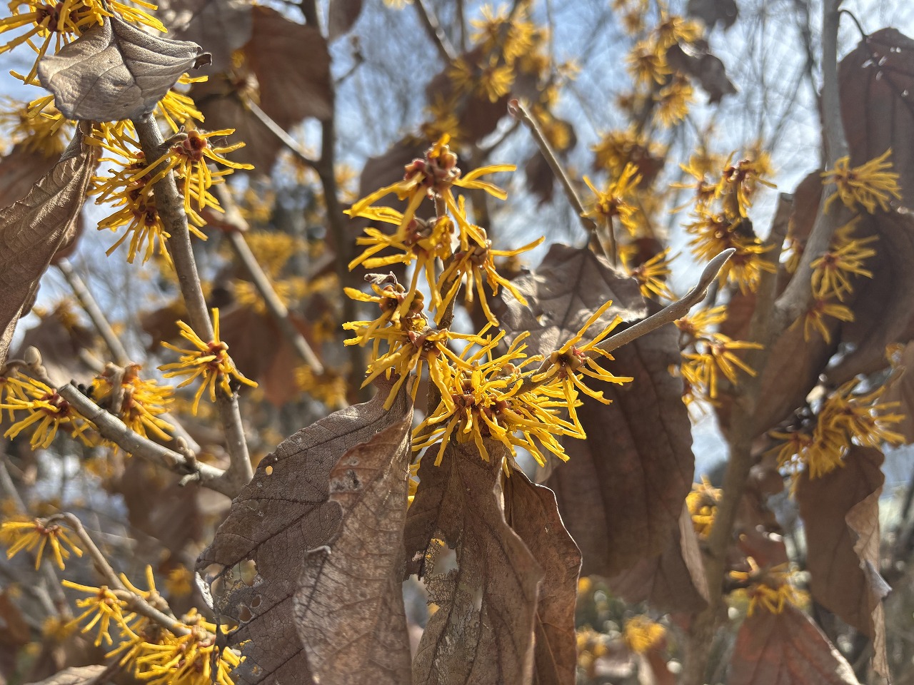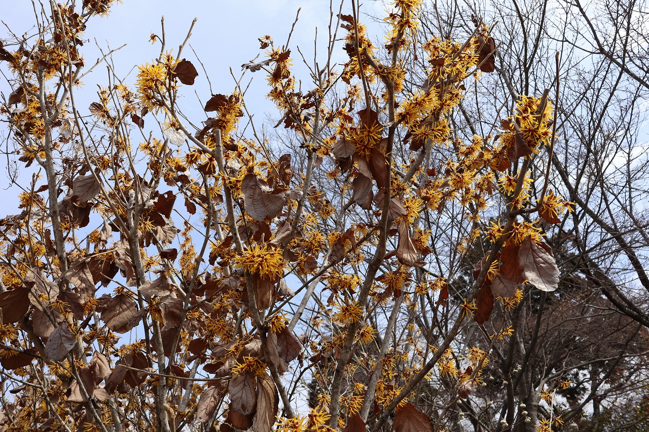 マンサク・・・見頃です。「まず咲く」の音が訛って「マンサク」になったとも言われています。
