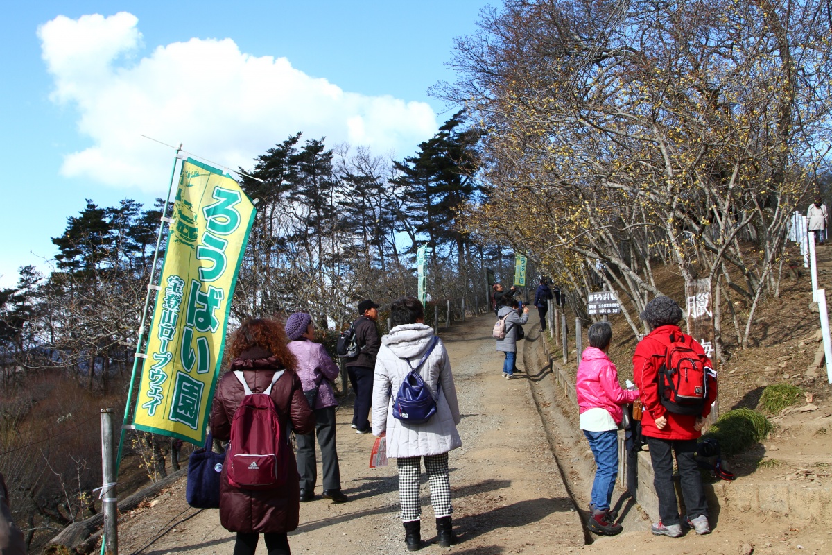 2017年2月3日 宝登山山頂ロウバイ園 開花状況2月3日現在 長瀞観光情報 ロウバイ情報 宝登山山頂のロウバイ園の開花状況をお知らせします。 2月3日現在、手前の東ロウバイ園は5分咲き、奥の西ロウバイ園はほぼ満開の見頃となっています。 明日から、東武鉄道・西武鉄道・秩父鉄道三社合同 長瀞宝登山蝋梅ハイキング企画が始まります。(2月4日~19日まで) 受付は9:30~11時まで、長瀞駅前観光案内所で行い、ご参加の方にはもれなく粗品プレゼントがあります。是非ご参加ください。 【西ロウバイ園】見頃(ほぼ満開) 【東ロウバイ園】5分咲き