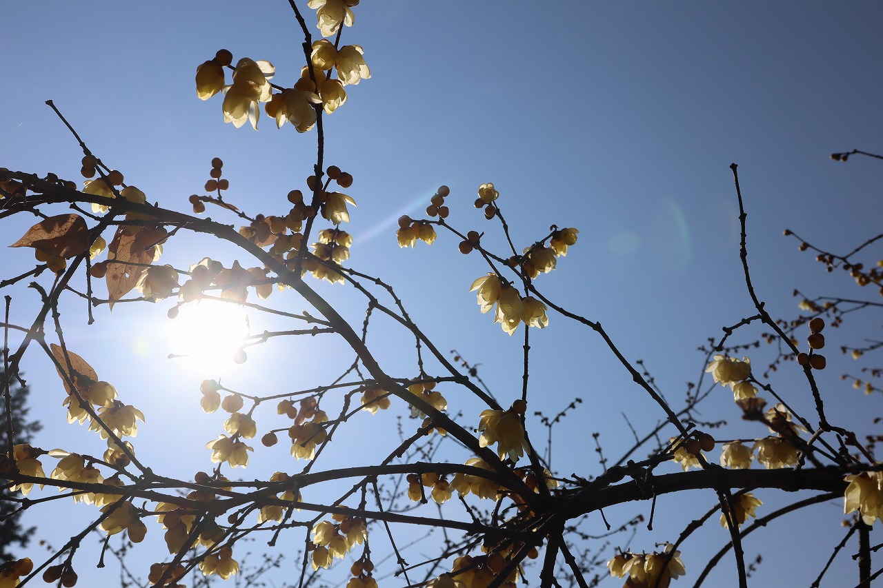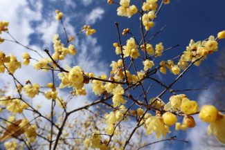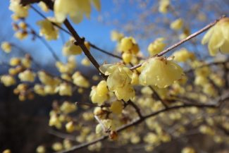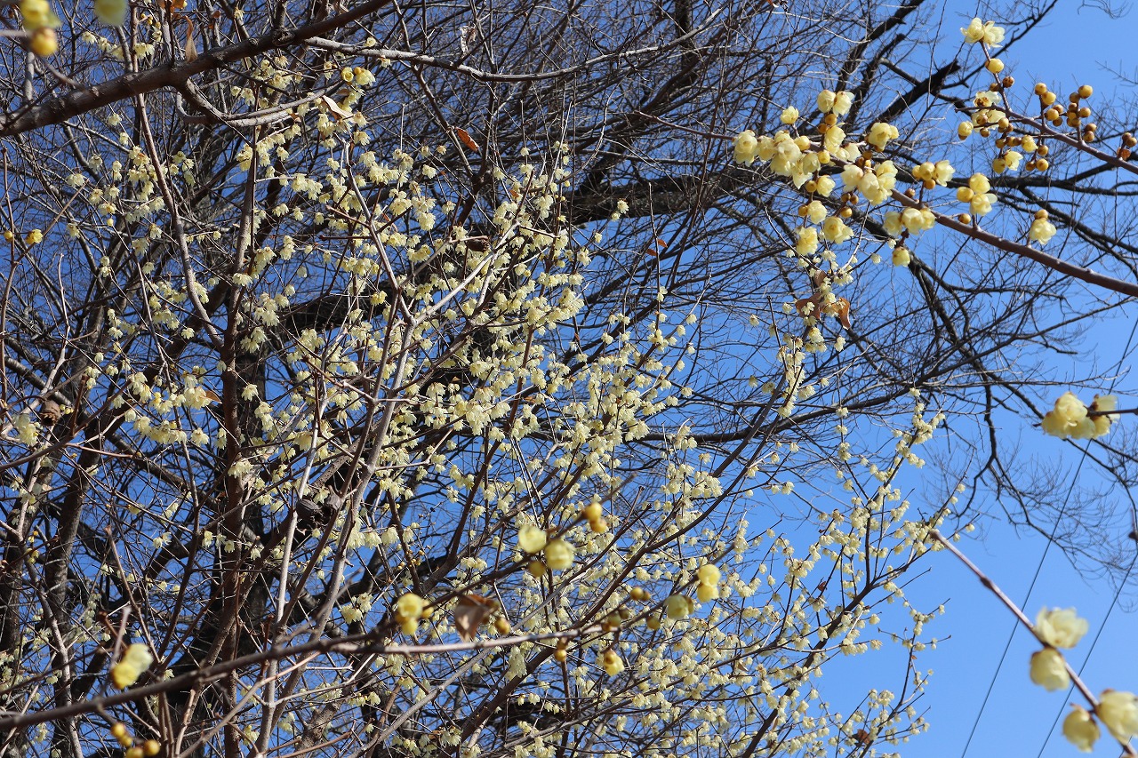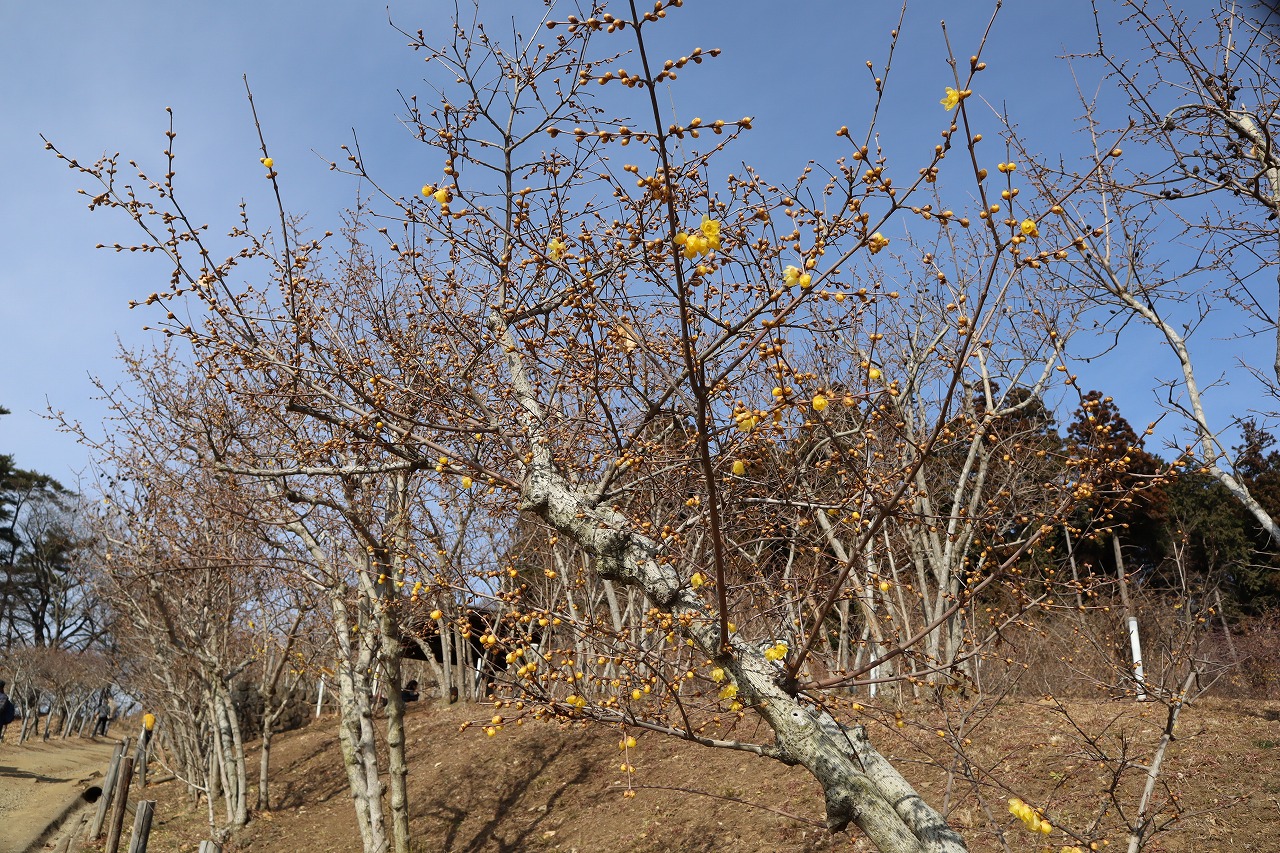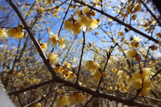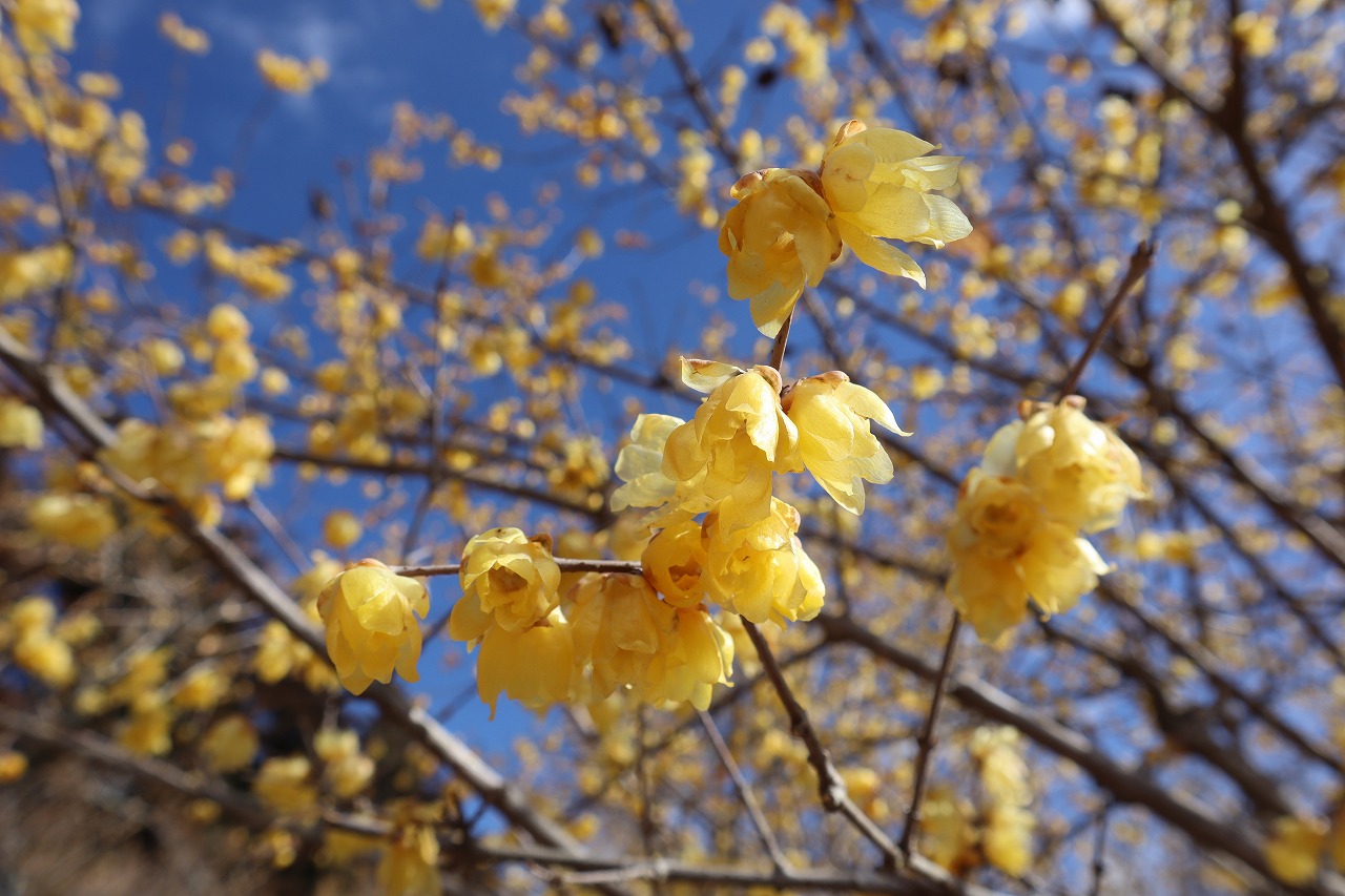 東ロウバイ園・・・見頃です。 青空に黄色が映えます。