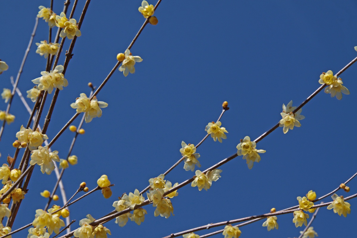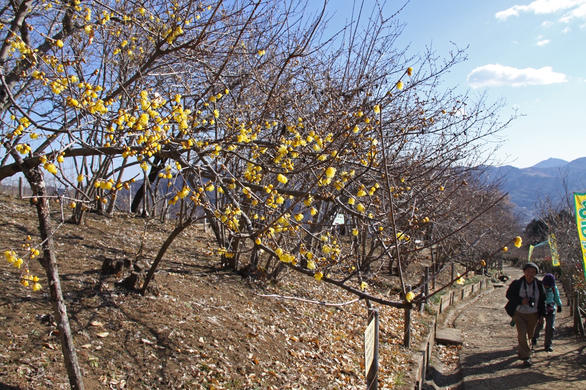 黄色のロウバイは花開くと、甘い香りを放ち、長瀞に一足早い春を知らせてくれます。
