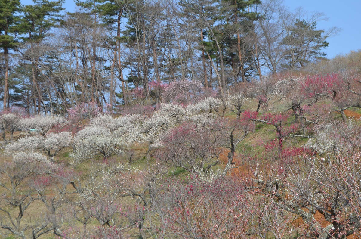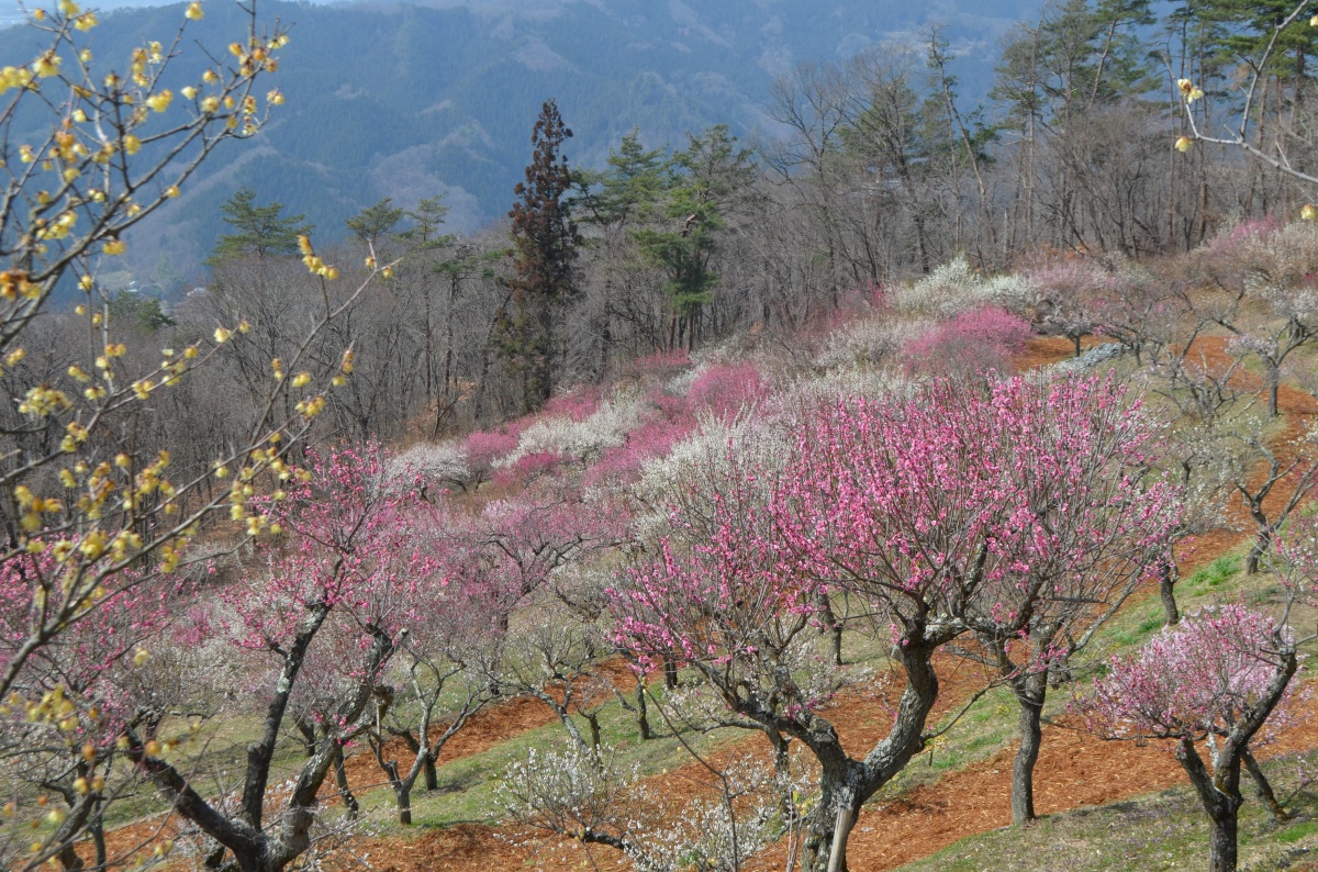 山頂「梅百花園」、山麓不動寺「しだれ梅園」