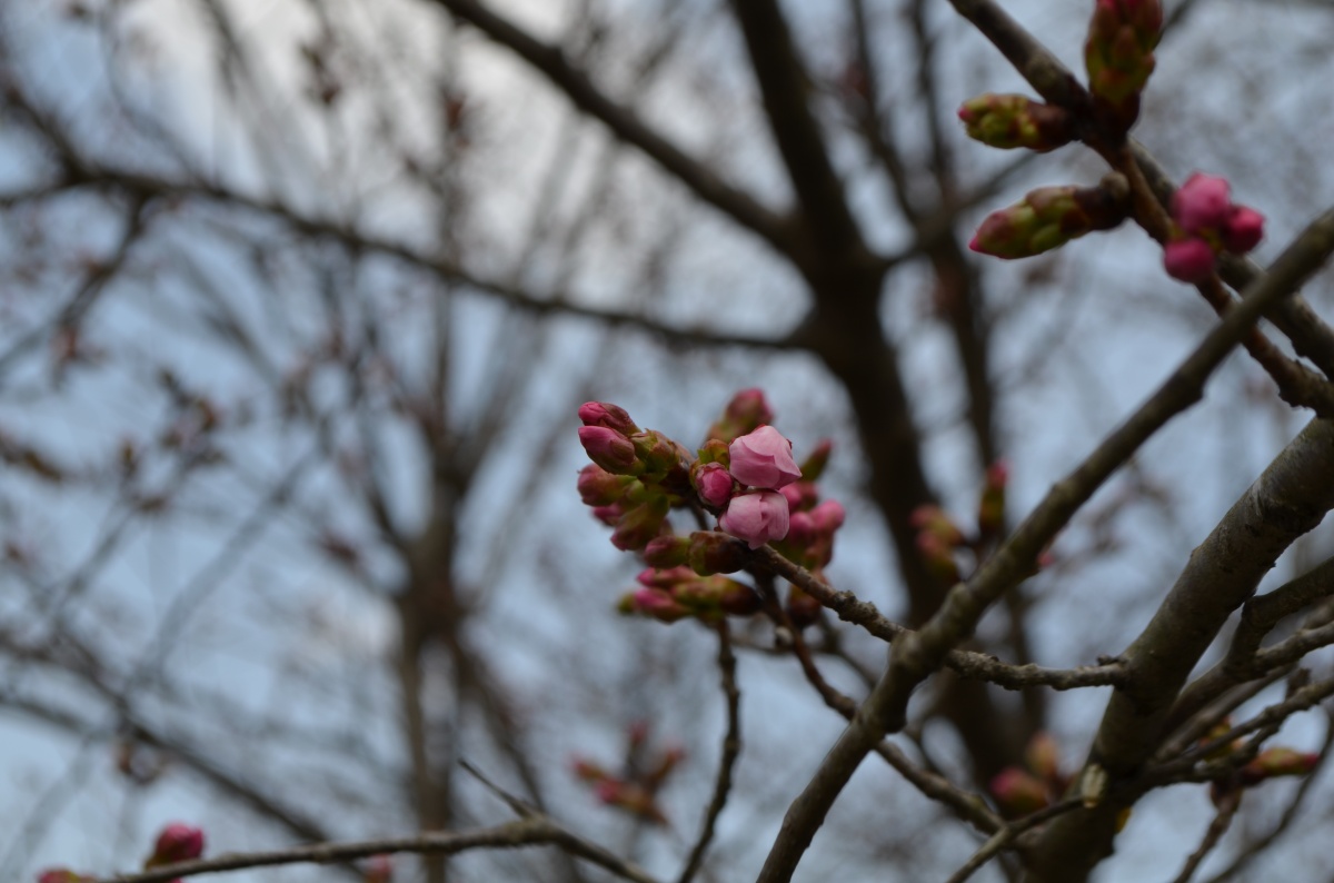 また、通り抜けの桜・権田山が種類によっては咲き始めています。
