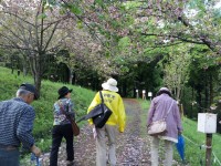 小高い丘のような山に、背の高いソメイヨシノが植えられています。